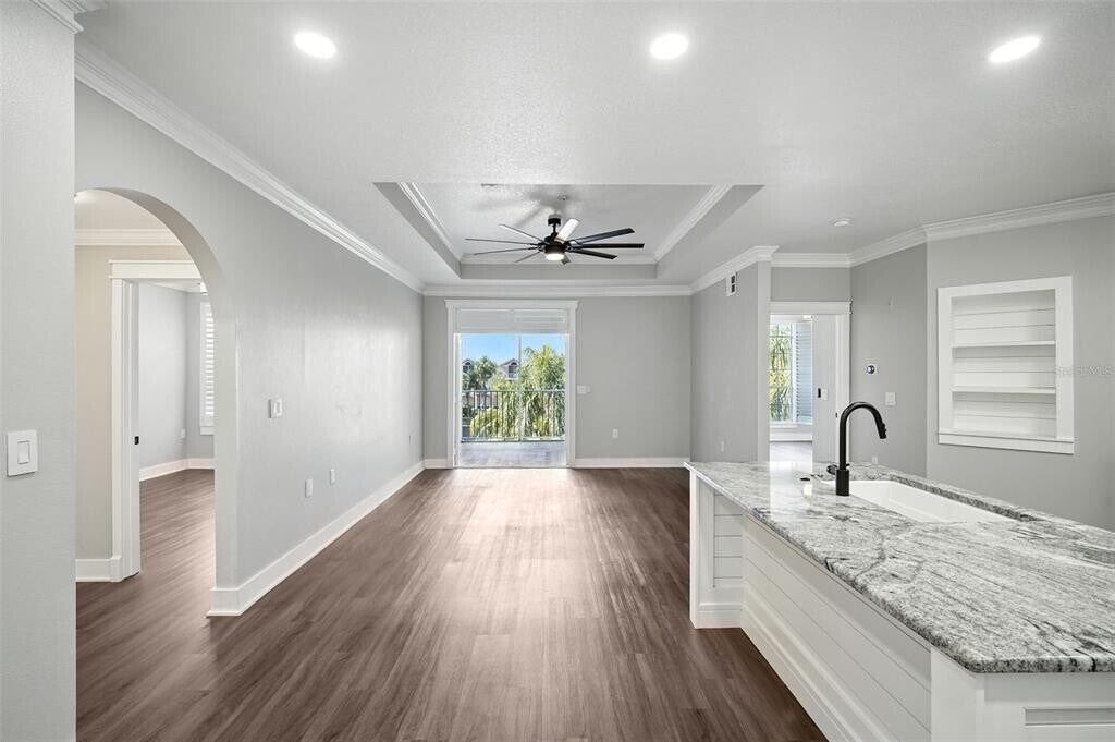 Available April 1! This designer-renovated 2-bedroom,2-bath condo is located in the GATED BAYFRONT community of Island Club at Rocky Point and offers 1,176 square feet of well-designed living space. The interior features a modern black-and-white aesthetic with elevated ceilings,crown molding,and an open layout that feels sleek and magazine-worthy. A true centerpiece,the kitchen STANDS OUT with quartz countertops,an oversized island,42-inch cabinetry,a custom backsplash,and a full LG stainless-steel appliance package,all complemented by a spacious pantry with in-unit laundry. The split-bedroom floor plan offers ideal privacy,with the primary suite featuring a walk-in closet and a beautifully updated en suite bathroom with bold designer tile,while the second bedroom includes a walk-in closet and access to an equally updated guest bathroom with a walk-in shower and spacious vanity. A screened-in lanai extends the living space,creating an inviting space to relax with a book,while NEW hurricane-rated windows have been installed throughout. Internet and cable TV are INCLUDED in the rent,and the unit is offered partially furnished,including a queen-size bed with mattress,two accent chairs,four barstools,and a TV. The unit also features a PRIVATE GARAGE (Unit 5D) with a dedicated parking space in front,along with one parking sticker for residents. Residents of the gated Island Club community enjoy a variety of amenities including a waterfront clubhouse,fitness center,pool,hot tub,sauna,patio seating with gas grills,walking and biking paths,and a community dock overlooking Tampa Bay,all set in a prime location just minutes from Tampa International Airport,downtown Tampa,the Gulf beaches,top dining,and major commuter routes. MLS# TB8486550