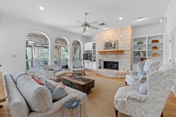 This Austin Stone home is set back for ample privacy and charm on a 1+ acre tree covered lot. Exceptional location convenient to Bridge Point Elementary and St Stephens. Quick access to 360, Downtown (20 minutes), and The Domain (15 minutes). Both the kitchen and living areas are very generous size, and beautiful...fireplace, French doors, and wood floors, with abundant natural light throughout. Upstairs are the primary bedroom with en-suite bath, an additional bedroom with en-suite bathroom, 2 more bedrooms plus a full bathroom with a double vanity, and the over size game room. Welcome home!! Private cul-de-sac street Professionally Managed. Online applications ONLY at Morris Green **Contact Agent For Info / Tours** Andy Smith / / Contact us to schedule a showing.
