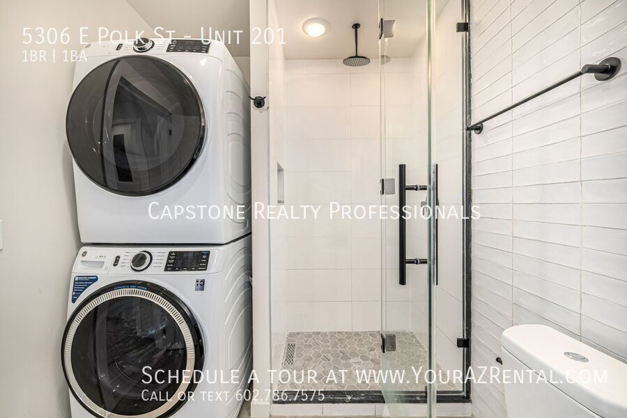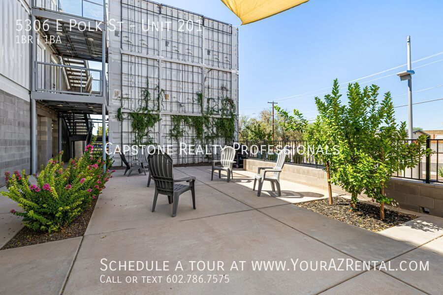 Experience the truly unique charm and modern industrial style of our 1-Bedroom Container Apartment located in the vibrant heart of Phoenix, AZ! This is not just an apartment; it's a testament to sustainable, cutting-edge design, fabricated from repurposed shipping container modules for superior strength and energy efficiency. This newer construction offers an exclusive urban living experience. This apartment is a perfect blend of style and comfort, featuring an open floor plan with eat-in kitchen. The kitchen is equipped with modern stainless steel appliances including a refrigerator, dishwasher, microwave, and stove/oven. Centrally located with quick access to Tempe and Old Town Scottsdale. Experience the convenience and style of living in our Modern Container Apartment near Papago Park and the Loop 202. Why you’ll love it: Trail time at Papago in the morning, city dining by night—without sacrificing style or convenience. -- Water, Sewer, Garbage: $30.00 Monthly Fee: Resident Benefit Package $49.99 Security Deposit: Equal to one months rent Cleaning Deposit: $275.00 Pet Deposit: $200.00 per pet One Time Lease Administrative Fee: $150.00 Stacked Washer/Dryer Wood Flooring