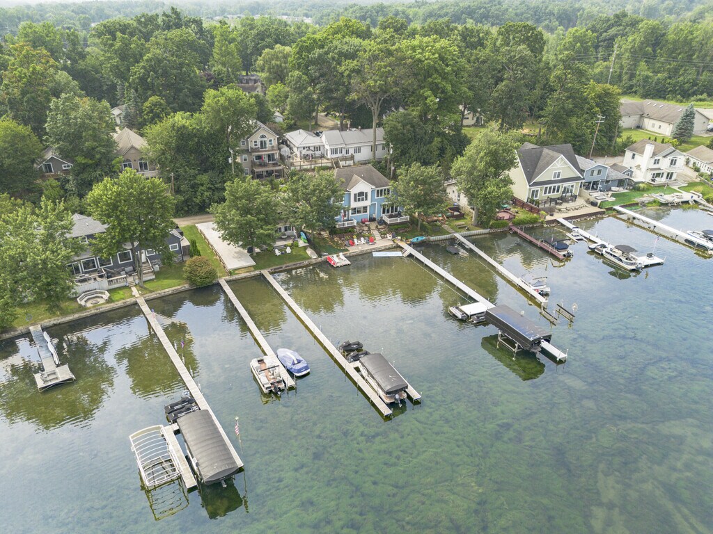 Built in 2017,this fully furnished two-story walkout home overlooking Lake Chemung provides over 3,200 square feet of exquisite,finished living space. The house offers spectacular lake views from all floors and features ceramic tile flooring in the bathrooms,kitchen,dining area,and great room. The open floor plan is designed for gatherings. Additional features include three full bathrooms,three bedrooms,second-floor laundry facilities,and a finished walkout basement with a large patio,stone fireplace,family room,and an extra bedroom. The primary suite has a WIC,with a balcony with a gorgeous lake view. The primary bath offers a jacuzzi tub and tiled shower. There is a 12 x 20-foot deck off the great room for entertaining or just relaxing. The home is equipped w/Murphy bed,making it a great family entertainment place. Deeded access to the lake. All Furniture stays! Close to I-96. Lake Chemung is a 313-acre body of water located between Howell and Brighton,measuring 1.6 miles in length and up to 70 feet deep. The property is situated within walking distance of a public park and near a public boat launch.