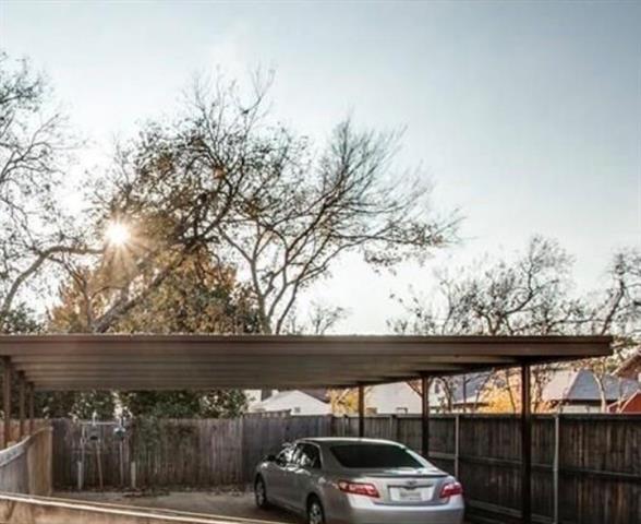 Charming and updated one-bedroom, one-bath duplex in Oak Lawn Heights offering approximately 1,000 square feet of living space. The storybook brick exterior with an arched, covered front porch creates a welcoming, cottage-style presence. Hardwood floors run throughout the spacious living area, which offers excellent natural light and flexible furniture placement. The open layout flows into the updated kitchen featuring granite countertops, stainless steel appliances, a gas range, and a generous breakfast bar with seating. Recessed and pendant lighting add warmth and functionality. The bedroom is well-sized and bright with hardwood floors and exterior access. The bathroom retains its classic character and is scheduled for improvement, including removing the bathtub and replacing it with a walk-in shower and glass enclosure. The outdoor space includes a covered front porch and a private backyard area, currently being converted into a low-maintenance patio with no grass. Covered parking included. Convenient location with easy access to Oak Lawn, the Medical District, Love Field, the Design District, and downtown Dallas. One covered parking space included. Additional street parking is available. Tenant pays utilities and is responsible for lawn maintenance for one-half of the front yard.