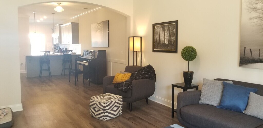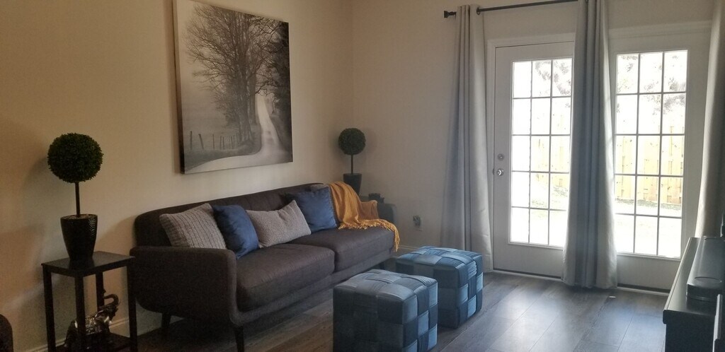 Welcome to Grovetown Georgia! This quant Townhome has 3 Bedrooms and 2 1/2 Bathrooms. It has many upgrades to include granite countertops, LVT flooring, UV shielded window tint on all windows on the west side of the home, and chair rail border in the dinning room. The Master Bedroom with en suite bathroom is on the main floor in close proximity to the laundry room. Upstairs includes another full bathroom and 2 more bedrooms with a walk-in attic. This town home has a fenced in back yard and includes access to the neighborhood's clubhouse and junior Olympic sized swimming pool. This town home is located within 15 minutes of Fort Gordon and even closer to all sorts of dining and entertainment options and the Columbia County school system. Come view this beautiful home today. Available for move-in NOW! Pets are allowed at discretion of owner and property manager. Pet fee and pet deposit is required. Not furnished. Pictures with furniture is just showing space size. Call or text for details. Kristen Myers - Minimum Credit score is 650. Online applications can be found at Application fee is $85 per adult. Do not submit applications on any other sites.