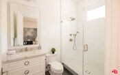Welcome to this privately nestled true Traditional in the Melrose Village FULLY FURNISHED! On a gated and secured lot sits a 3,597 sqft 4 bed 5 Bath home with an oversized rooftop deck with 360 degree views of the LA skyline. High ceilings throughout provide a grand feel that leads you out onto a privately hedged backyard oasis. Built to take full advantage of the indoor outdoor living that LA is made for. Large spa and pool is surrounded by space to entertain and relax. The first floor is accommodated by a formal dining room, wine cellar, as well as an en suite guest bedroom. Upstairs the primary suite is accompanied by 2 more bedrooms and a laundry room for easy access. Stairs lead to a generous rooftop deck overlooking LA. Centrally located, you are a short walk from the best shopping and restaurants la has to offer. Also available for sale at $4,200,000. MLS# 26637411