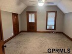 Ready to move into 1 1/2 Story home. You must get inside and check this one out! Lots of original woodwork and fresh paint. Has a main floor bdrm and full baths on both floors. Main floor laundry with washer and dryer included. Has a gas, high efficiency furnace and central a/c. It also has a gas stove heater in the living rm. Sitting area off the master bdrm upstairs facing West and a deck out the East side towards downtown. 2 Car garage. Close to Creighton University and Mid Town Crossing!