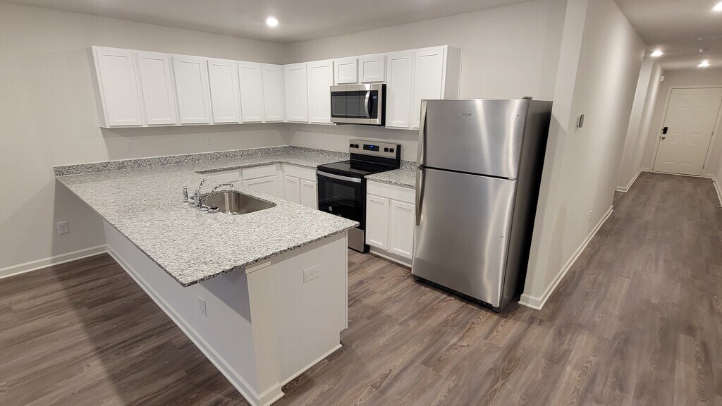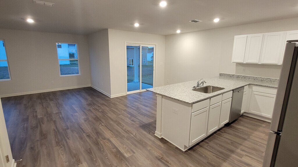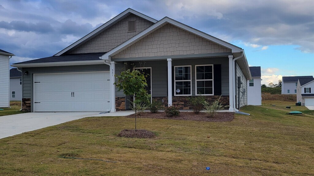 Take a look at this BEAUTIFUL NEW Single-Story Home in the Kingston Park Community! This popular floorplan features an open concept Living, Dining, and Kitchen area. The Kitchen has granite counters, white cabinets, pantry, and stainless appliances including a built-in microwave, dishwasher, stove, and refrigerator. The spacious Master Bedroom has a private bathroom with full size walk-in shower and double vanities along with a large walk-in closet. There are three more spacious bedrooms and another full bathroom. Finally, enjoy the convenience of a private laundry room with washer and dryer INCLUDED. Outside you will enjoy the nice sized, fully-sodded, and landscaped yard. Enjoy some fresh air on the front porch, or on the covered back patio. There is also plenty of room to park in the 2-car garage, with enough driveway space for several guests. This really is single-story living at its finest. This property is also available fully furnished for $3,700/month, which includes utilities and internet. You deserve single family rental living at its best! BEWARE OF LEASING FRAUD! This home is offered on Zillow and its partner companies only. It is not offered on Craig's List, FB Marketplace or any other similar sites.