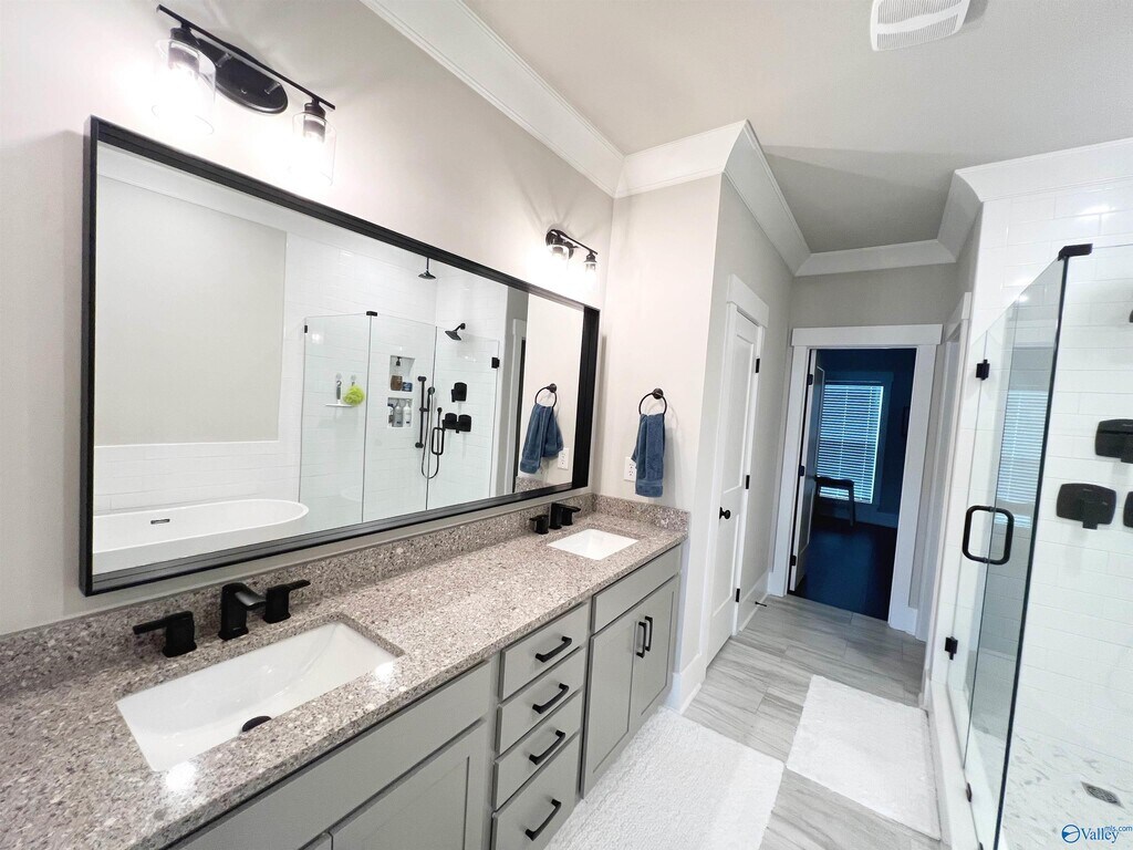 Stunning home with over 2300sq ft,3 beds,2.5 baths,large loft area,gas fireplace and incredible master suite with stand-alone tub and fully shelved walk-in closet. Your dream kitchen with pot filler over the gas cooktop,wall oven/microwave,quartz throughout and soft close cabinetry. The foyer & dining have 5' craftsman style paneling and great room boasts will 8’ coffered ceilings,gas fireplace with a detailed mantle,& built-in shelving wall. Perfect location minutes to Redstone Arsenal,Bridge Street,restaurants,stores,and everything Town Madison has to offer. Rent includes ALL yard maintenance,clubhouse,pool and fitness center!