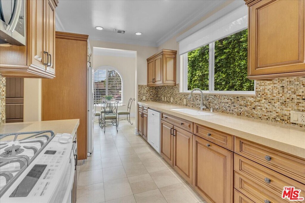 BREATHTAKING 18,000+ sq. ft. GATED LOT! Sensational immaculate and like-new 3 + 3.5 stunning home with 10' ceilings and wood floors thru-out. Absolutely drop-dead gorgeous and fully (yet sparsely) furnished. Perfect for an artist/ writer/ creative / work-from-home person. Sparse and clean - ready to move in tomorrow. See photos - everything is top notch. Soaring ceiling formal entry foyer. Large Liv Rm/Great Rm w/FP and Entertainment Center. Designer kitchen with high counters, KitchenAid appliances and a sunny front-facing BK. Primary suite with huge walk-in closet and french doors to yard and patio. Guest bedroom is en suite and 3rd bedroom is set up as an office w/ loveseat. Powder 1/2 bath off entry. Built-in speakers/surround-sound in LR, baths, primary and outdoors. Patio is replete with patio furniture and gas heater for parties. Brand new BBQ provided. The yard is turf, not real grass, and the landscape is on a drip system. Washer & Dryer in hall closet - full size newer machines. New tankless water heater. Detached 2-car Garage is clean with storage cabinets & ladder for tenant to use. Exterior security cameras. Owner shall retain the Guest House for storage and to stay in if he visits the area. The Owner put his heart and soul into this house and it shows. Bring your fussiest clients - you can eat off the floor in this house! Close to Houses of Worship, pre-schools and religious institutions, as well as a quick jump onto Coldwater Cyn for Westside access. MLS ID 26755155