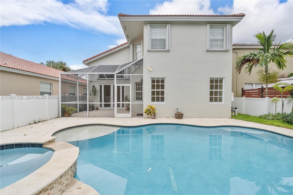 Beautiful 4/2.5 home with pool!!THIS AMAZING HOUSE IS LOCATED IN THE GATED COMMUNITY OF MAYFAIR WYNDHAM LAKES, you are in A rated Parkland school district. This immaculately maintained residence features a brand-new roof and soaring volume ceilings with extra windows that fill the home with natural light. All bedrooms are located on the second floor, offering added privacy and a comfortable separation from the main living areas. The remodeled kitchen is outfitted with granite countertops and high-end LG appliances. The spacious primary suite boasts a newly renovated bathroom with a modern shower, soaking tub, and dual sinks. The second bathroom has also been updated, along with a remodeled half bath on the first floor. Enjoy new wood flooring upstairs and tile throughout the downstairs, upgraded blackout window treatments, and ceiling fans. Additional highlights include an indoor laundry room, extra storage closets, and a newer A/C system. Step outside to your private, fenced, and beautifully landscaped backyard complete with exterior lighting. The resort-style pool features a waterfall, hot tub, and a screened-in patio — perfect for relaxing or entertaining.