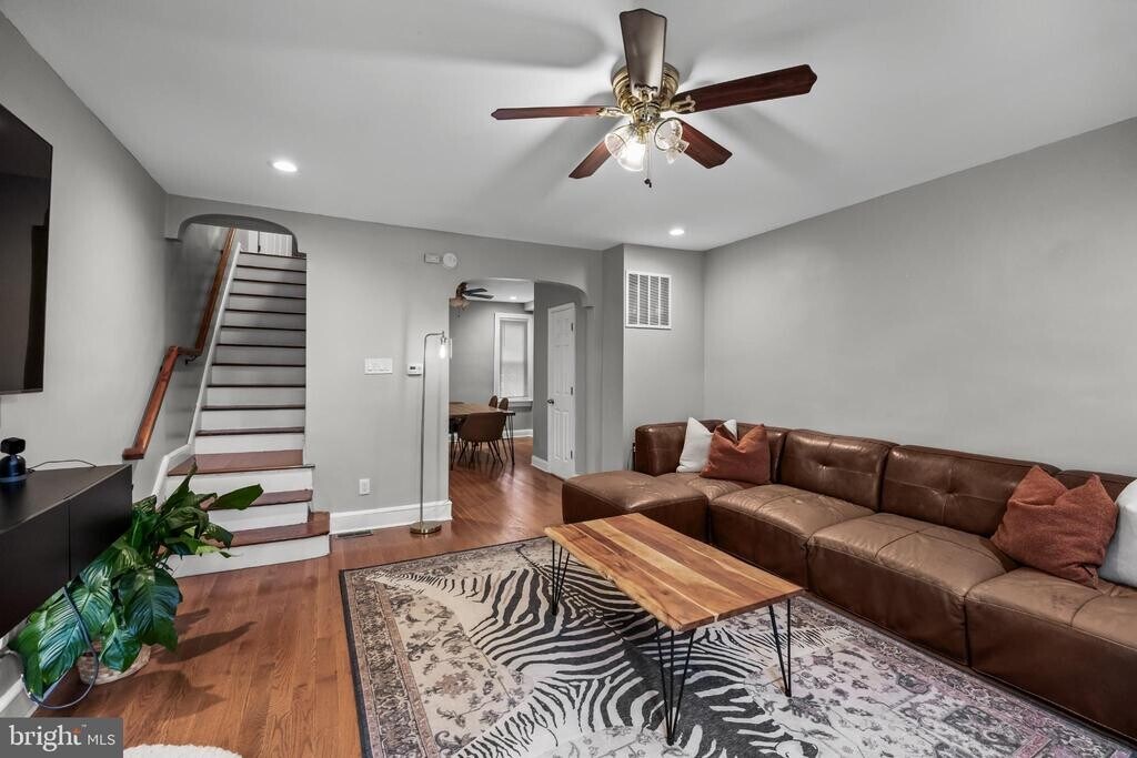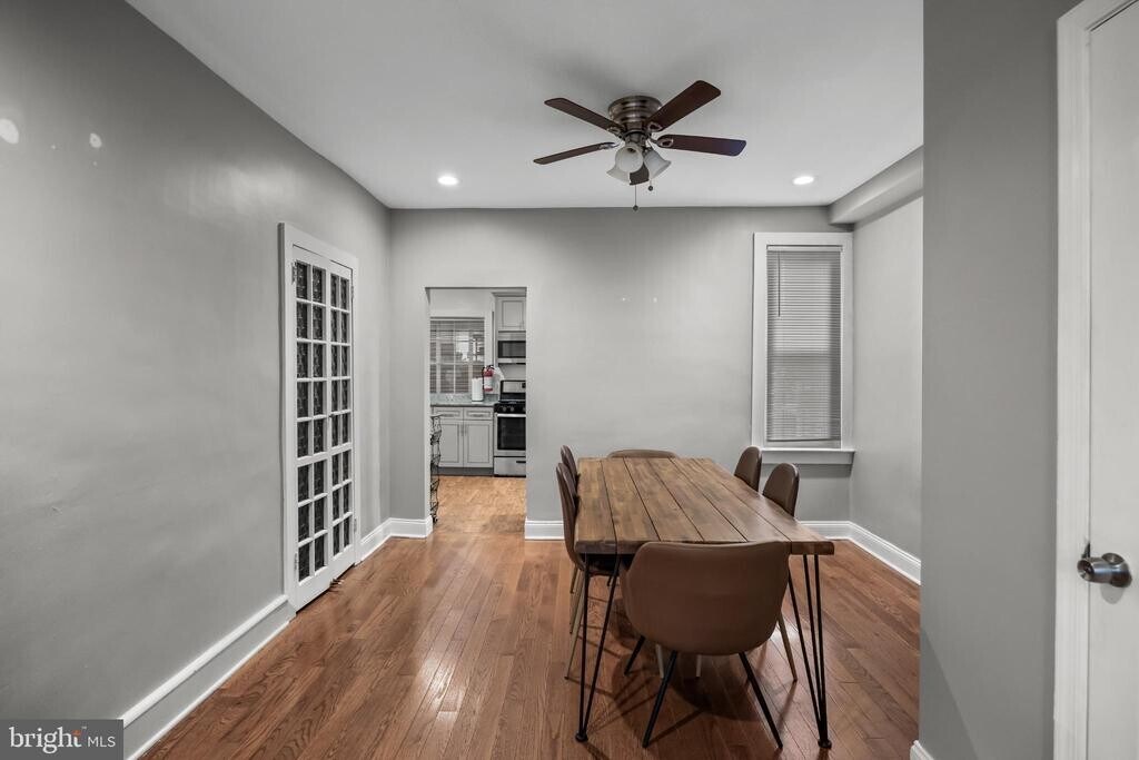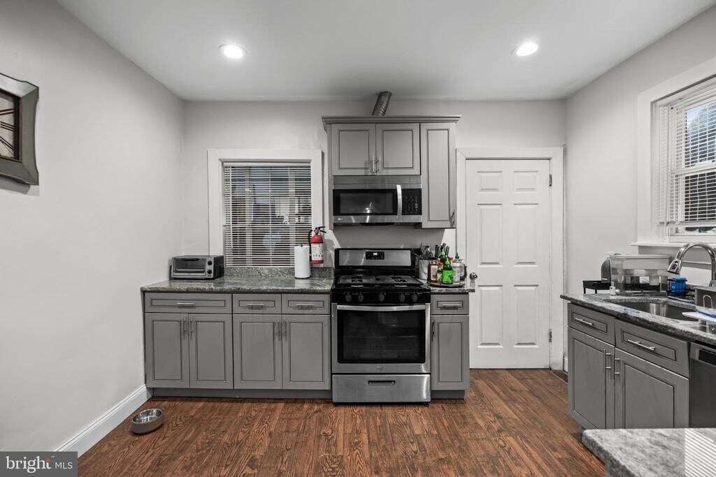 This charming 3-bedroom, 1.5-bathroom townhouse, built in 1927 and extensively renovated in 2017, offers a blend of classic Tudor architecture and modern amenities. The interior features hardwood and ceramic tile flooring, and central Air Conditioning and Heating. The eat-in kitchen is equipped with stainless steel appliances, including a stove, built-in microwave with exhaust to the outside, dishwasher, and refrigerator with ice maker, perfect for culinary enthusiasts. The full basement provides ample storage and laundry hookups, with direct walk-out to the off-street parking space in rear. Convenient access to public transportation within a mile, this property is ideally located. Available for lease starting October 15, 2025, with flexible terms ranging from 12 to 36 months. Experience the comfort and charm of this well-maintained home, ready to meet your needs.
