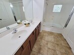 Nice 3 bedroom,2 1/2 bath,2 garage. Freshly painted in quiet neighborhood,spacious open floor plan with title and hard wood floors. Principal bedroom has large walk-in closet. covered patio with ceiling fan. Epoxy flooring in the garage,sprinkler system. Washer,dryer and refrigerator included. MLS# 4965580
