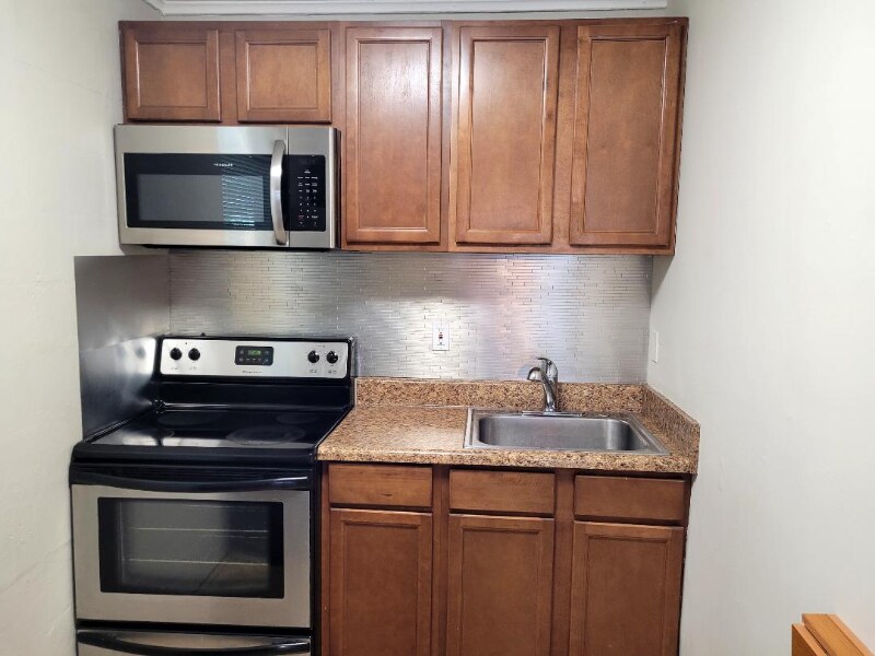 Property Id: 1519066 Move-in Special...Non-smoking studio apartment with a full kitchen and bathroom for rent at $1400 per month or $330 per week (based on single occupancy) includes electric, water, pest control and lawn maintenance. 5312 Old Cheney Highway Apartment D Orlando 32807. 6 or 7 month lease depending on your move in date and then month to month. $1400. security deposit. $50 application fee per person. Recently painted with tile floors throughout. Kitchen has wood cabinets with stainless steel appliances (range, built in microwave/hood, stainless steel back splash, stainless steel sink, side by side refrigerator with water/ice in the door). 2 closets plus a pantry. Bath has tub/shower and granite top on vanity. 2 ceiling fans. Park in front of your door. Security lighting. Leaded glass window in front door. Pay washer/dryer on the property. The Cady Way Jogging Trail is across the street. Unit is on the left in the picture. Available Now.