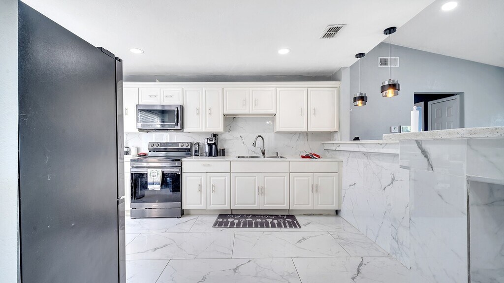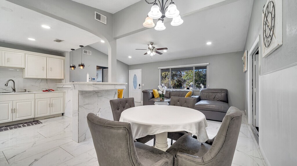 This charming 1,452 sq. ft. home boasts 4 bedrooms, 2 FULL bathrooms. Stunning white marble tile throughout, washer/ dryer included. Enjoy a FENCED backyard with fruit trees, fresh paint, and STAINLESS STEEL appliances. Rent is $2,400/month with a $2,400 security deposit. Requirements to Apply: Income of at least 2.5x the rent Minimum credit score of 620 Complete an application and background check Schedule your tour today!