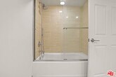 This beautifully updated 1,165 sq. ft. corner condominium offers two bedrooms and two bathrooms on a single level, with windows on three sides that fill the home with natural light and showcase open views. Built in 2011 and meticulously maintained, the residence combines modern upgrades with everyday comfort. The open-concept living and dining area features engineered walnut wood flooring and expansive windows that create a bright, airy atmosphere. The stylish kitchen is equipped with granite countertops, crisp white cabinetry, and premium appliances, including a Thermador professional range and dishwasher, a Bosch refrigerator with Thermador handles, and in-unit washer/dryer. Updated plumbing fixtures, contemporary hardware, full-spectrum recessed lighting, ECOS non-toxic paint, and cellular window shades add thoughtful finishing touches throughout. Designed for privacy, the two generously sized bedrooms are positioned on opposite sides of the unit. The primary suite enjoys peaceful tree and sky views and includes an en-suite bath with a large soaking tub. A second full bathroom in the hallway also features a soaking tub. Additional highlights include a private balcony with treetop views, a tankless water heater, and two tandem parking spaces in the street-level garage with convenient access to the building's elevators and stairwells. Ideally situated in Valley Village, the property offers easy access to the 101 and 170 freeways, parks, dining, shopping, and entertainment. Restaurants and supermarkets are within walking distance, making daily errands effortless. A wonderful opportunity to lease a well-appointed, newer condo in a prime location. MLS# 26655981
