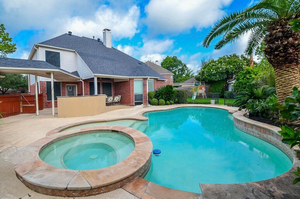 Experience the allure of this stunning 4-bedroom,3.5-bath home nestled on a quiet cul-de-sac. The backyard is a true paradise with a beautiful pool,palm trees,spa,outdoor bar,and expansive decking for shaded relaxation. A charming covered patio invites you to enjoy summer days by the pool or mornings with a cup of coffee. Inside,the spacious high-ceiling family room seamlessly connects to the kitchen,offering abundant natural light and featuring granite counters,ample cabinets,and stainless-steel appliances. The generous master bedroom boasts pool views,complemented by a private bathroom with quartz countertops,a separate shower and tub,and double sinks. A convenient home office on the main level and sizable secondary bedrooms upstairs,along with a game room,ensure ample space for every need. Additional highlights include a three-car garage,proximity to excellent schools and a junior high within walking distance,plus easy access to Westpark Toll,Highway 99,and I-10. MLS# 47443723