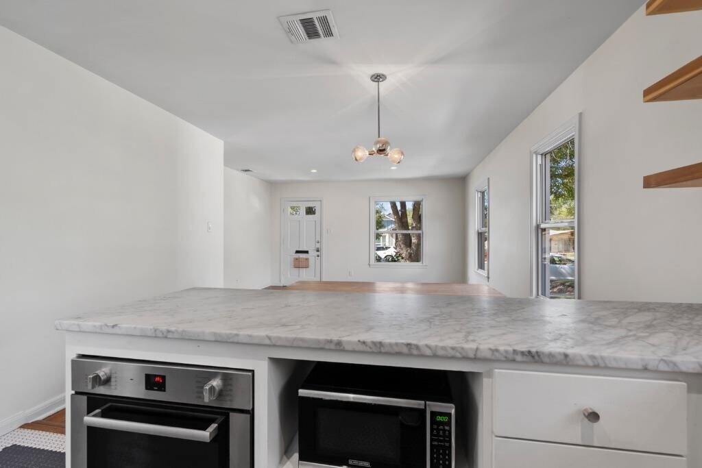 Charming and well-maintained 2-bedroom, 1-bath home in the heart of Central Austin! 5315 Grover Ave Unit A, Austin, TX 78756 available December 15th is a single-level unit features vaulted ceilings, quartz countertops, recessed lighting, and a bright open layout with no interior steps. The kitchen includes modern appliances such as a gas oven, electric cooktop, and stacked washer/dryer for convenience. Enjoy your private front yard and spacious back courtyard—ideal for relaxing or entertaining. Unit A also offers a one-car carport with storage and access to a shared driveway. Pets are welcome under 35lbs, and water and gas are billed back monthly. Located near Burnet Rd and North Loop, you’re just minutes from Austin’s top dining, cafes, and shops. The front yard and back courtyard between Units A and B belong exclusively to Unit A. The carport and carport storage are for Unit A only, while the driveway is shared. Tenants will be required to sign up for the Resident Perks Program at $25/mo per household.