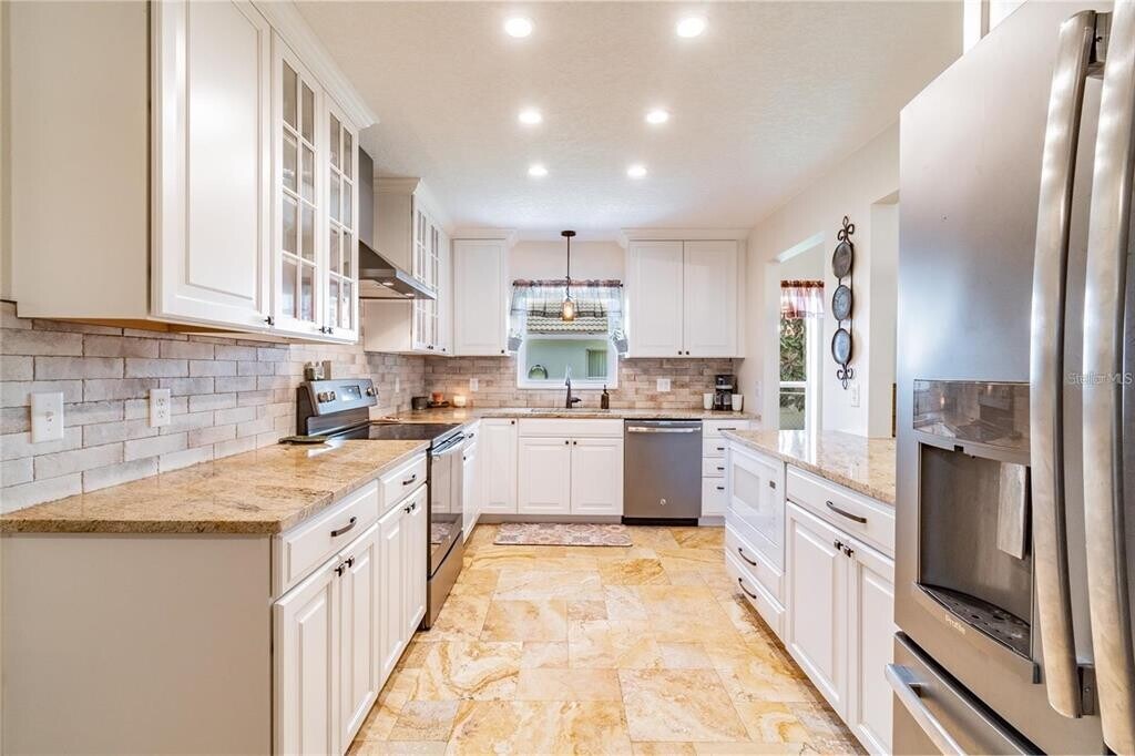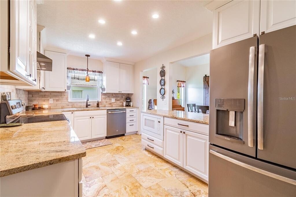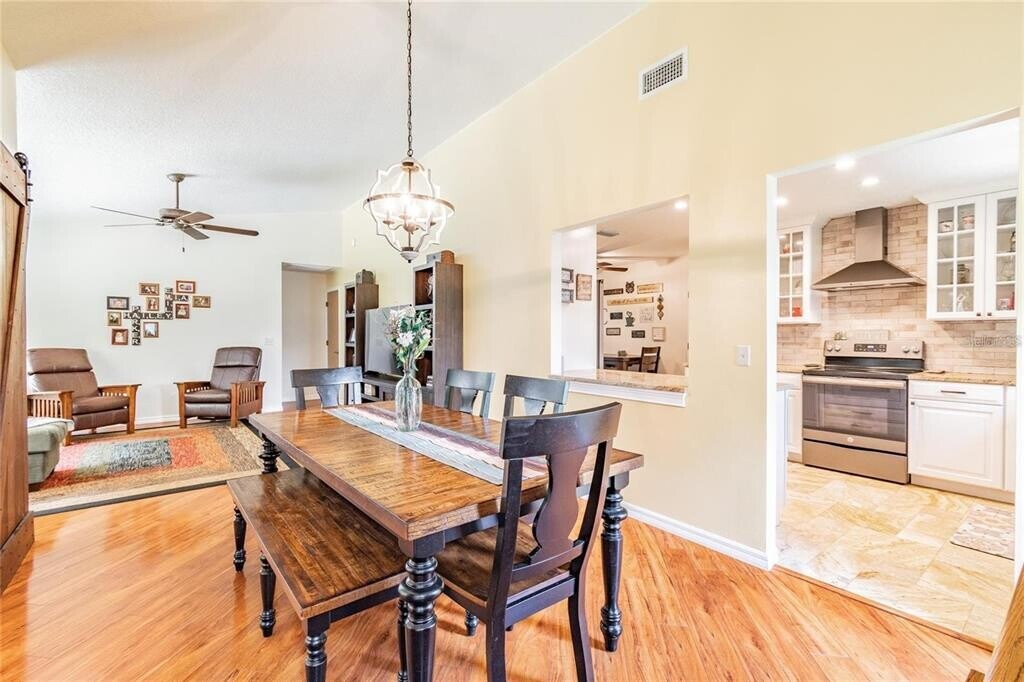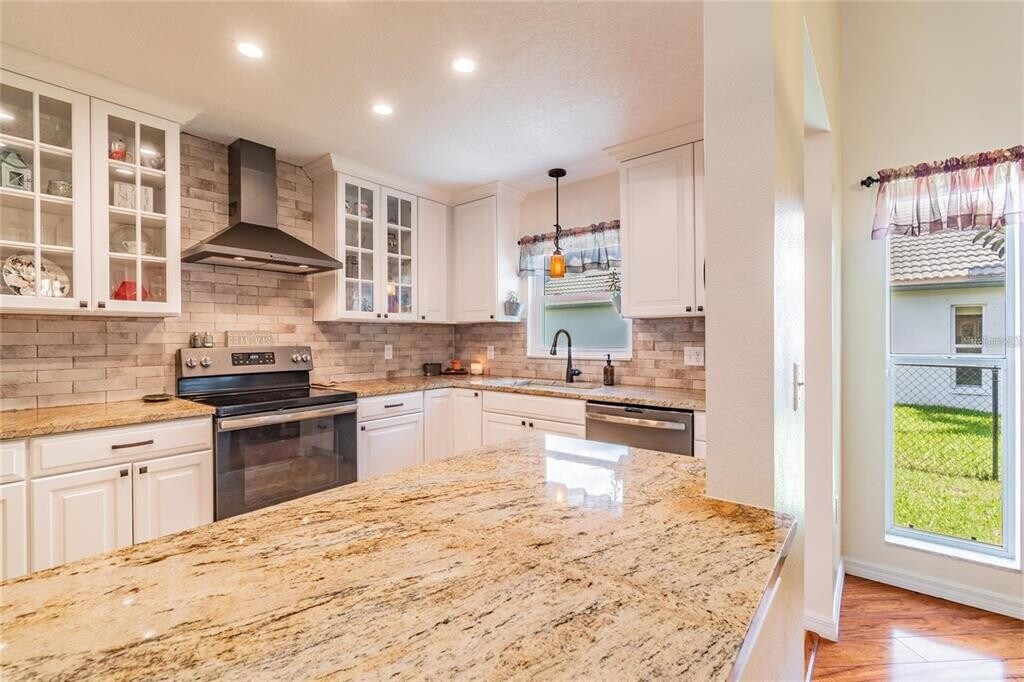 Spacious and beautifully updated 3-bedroom home with a dedicated office,perfectly situated on a conservation lot with private wooded views. The large fenced yard is ideal for outdoor living and entertaining. Inside,soaring cathedral ceilings highlight the open main living area. The home offers low-maintenance style with no carpet—flooring throughout is either wood laminate or tile. The updated kitchen features granite countertops,stainless steel appliances,and plenty of storage. Generously sized bedrooms and tastefully updated baths provide comfort and convenience. Located in a desirable neighborhood bordering Odessa,this home offers quick access to the Suncoast Parkway via SR-54,making commuting a breeze. Enjoy nearby amenities including Starkey Park,and all the dining,shops,and entertainment of downtown New Port Richey. Top rated schools you can verify for your satisfaction. Move-in ready and waiting for you!