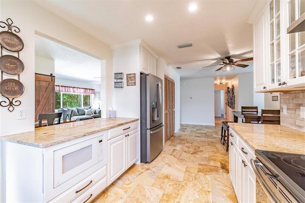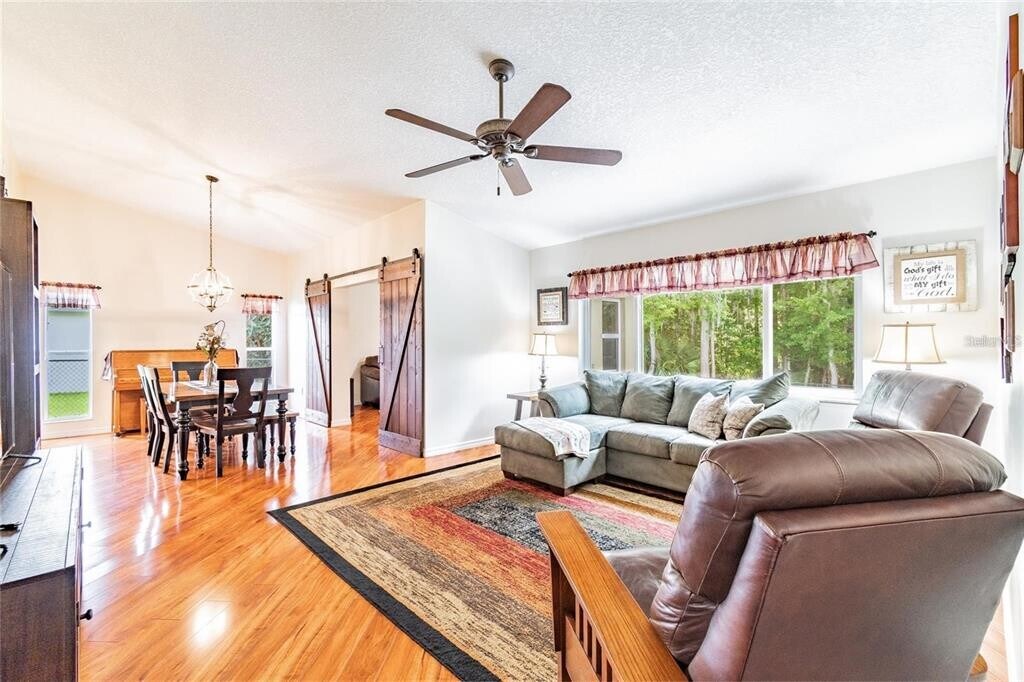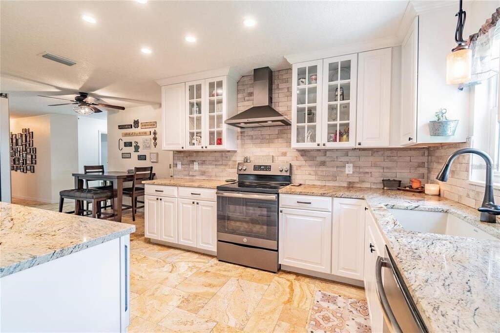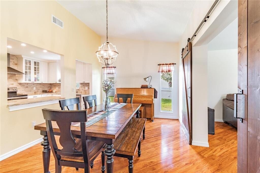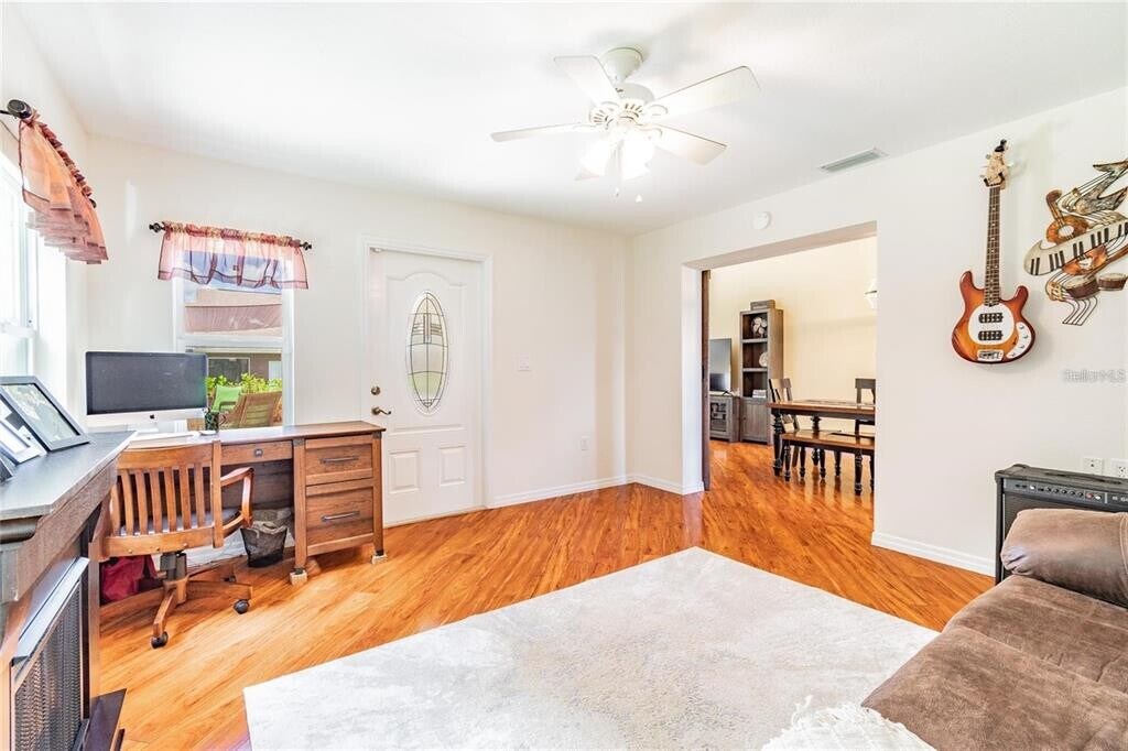 Spacious and beautifully updated 3-bedroom home with a dedicated office,perfectly situated on a conservation lot with private wooded views. The large fenced yard is ideal for outdoor living and entertaining. Inside,soaring cathedral ceilings highlight the open main living area. The home offers low-maintenance style with no carpet—flooring throughout is either wood laminate or tile. The updated kitchen features granite countertops,stainless steel appliances,and plenty of storage. Generously sized bedrooms and tastefully updated baths provide comfort and convenience. Located in a desirable neighborhood bordering Odessa,this home offers quick access to the Suncoast Parkway via SR-54,making commuting a breeze. Enjoy nearby amenities including Starkey Park,and all the dining,shops,and entertainment of downtown New Port Richey. Top rated schools you can verify for your satisfaction. Move-in ready and waiting for you!