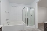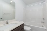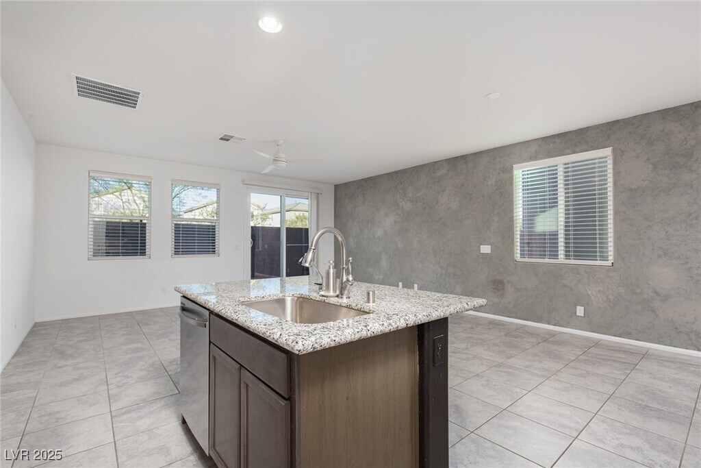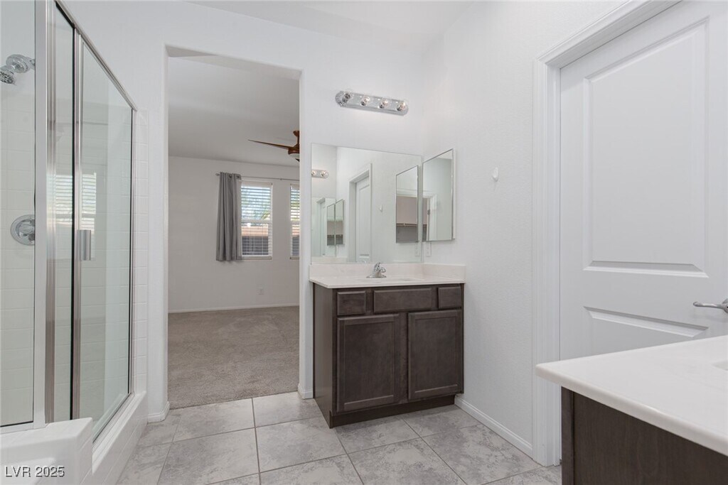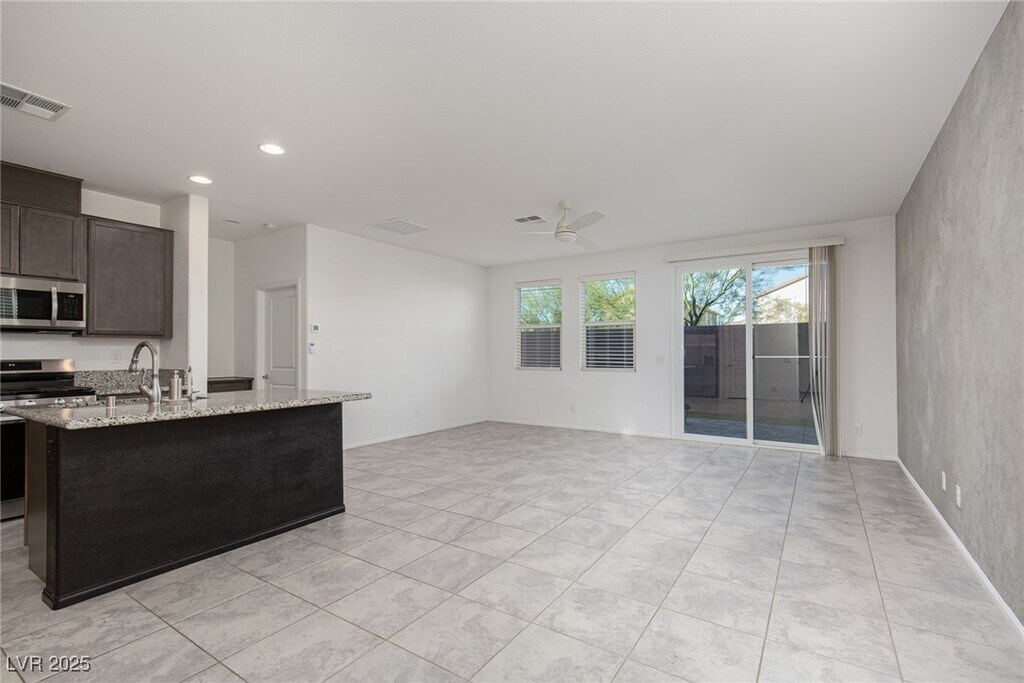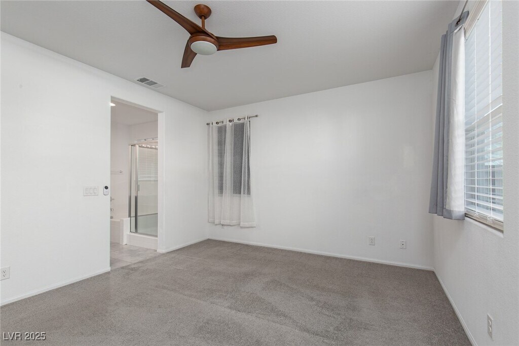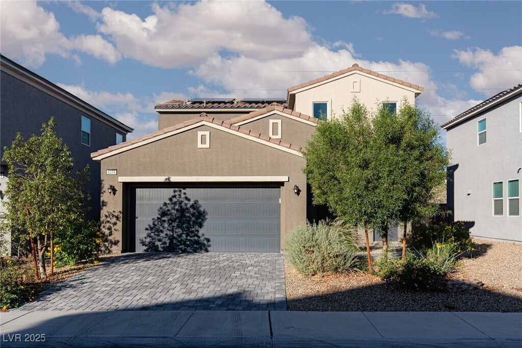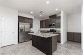 Welcome to this newer 4br/3.5 bath home located in North Las Vegas, NV. This home comes with solar power included at no charge, making it an eco-friendly and cost-effective choice. The house boasts an island kitchen, complete with granite counters and a microwave, perfect for those who love to cook. The breakfast bar provides a cozy spot for morning meals and casual dining. The home is equipped with ceiling fans for added comfort. The master bedroom, conveniently located downstairs, features a separate tub and shower, and separate vanities, offering a luxurious and private retreat. The upstairs laundry facilities add to the convenience of this home. Outside, you'll find a large paver patio, perfect for outdoor entertaining, and an artificial turf backyard, offering a low-maintenance outdoor space. This home combines modern amenities with thoughtful design, making it a perfect choice for those seeking a comfortable and sustainable living environment.