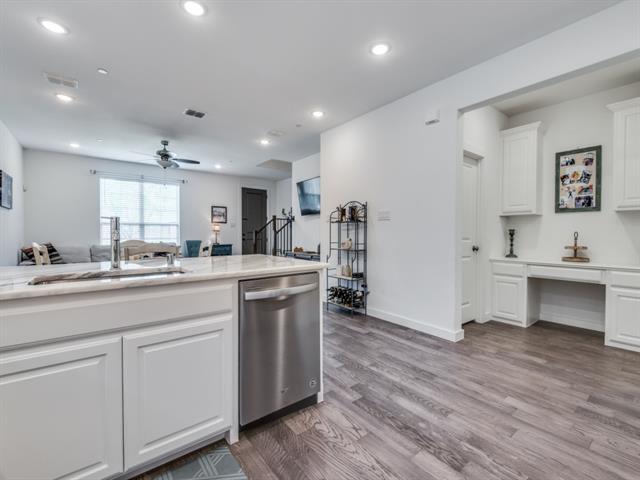 Lovely townhome in the heart of Las Colinas with wonderful open floor plan, spacious luxury kitchen and wood floors. Master bedroom with high ceilings and 3 closets! Price include French door fridge, washer and dryer.