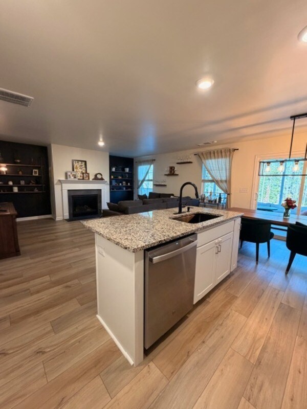 Welcome home to this truly warm and inviting 3-bedroom, 2.5-bathroom gem, perfectly nestled in a peaceful cul-de-sac. This property is designed for modern living and comfort, with thoughtful details throughout. Main Level Charm and Functionality-Step inside to a bright, open-concept main floor featuring beautiful LVP flooring that flows seamlessly throughout. The heart of the home is the stunning great room, which boasts built-in shelving, a cozy gas fireplace, and an open view to the kitchen. The chef-friendly kitchen island is perfect for meal prep and gathering. Tucked away is a versatile flex room, accessible through elegant glass French doors—ideal for a home office, study, or play area. Special touches add unique character, including a charming built-in playhouse and doghouse cleverly situated under the stairwell! Tranquil Upper Level-Upstairs, a welcoming loft greets you, providing a wonderful secondary living space. The spacious primary bedroom is a true retreat, featuring a generous walk-in closet and a private en-suite bath complete with a double vanity and separate tub and shower. Bedrooms 2 and 3 are equally accommodating, each boasting their own walk-in closets. A second full bath and a convenient dedicated laundry room complete the upper level. Outdoor Oasis-The enjoyment continues outdoors with a lovely screened porch, perfect for enjoying your morning coffee or evening relaxation, rain or shine. This overlooks a large, fully fenced-in yard that backs up to peaceful natural areas, offering privacy and a beautiful view. This home is available unfurnished for a minimum 12 month lease.