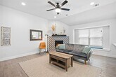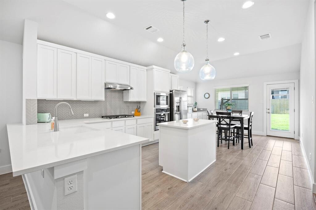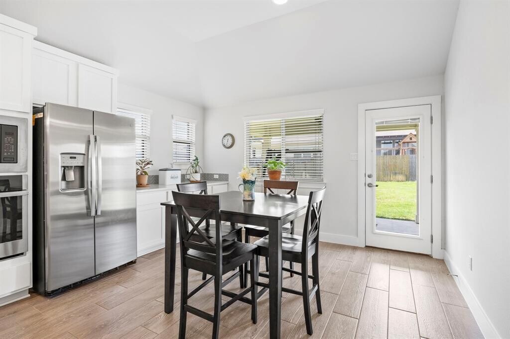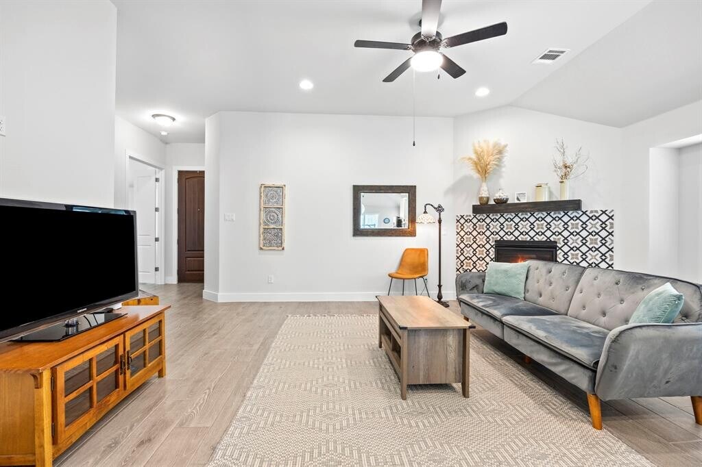Welcome to this beautifully maintained single-story home in the desirable Star Ranch community, offering the perfect blend of modern finishes, thoughtful design, and convenient location. With 1,762 square feet, 3 bedrooms, 2 full bathrooms, large office, and 2-car garage, this home is designed for both comfort and functionality. Built in 2021, the exterior features stone and brick veneer and a covered front patio—ideal for enjoying your morning coffee or greeting guests. Inside, you’ll find wood-look tile flooring throughout the main living areas for durability and style, with plush carpet in the bedrooms. The open-concept layout creates a seamless flow from the living room, featuring a gas log fireplace with a custom tile, to the kitchen and dining areas—perfect for everyday living and entertaining. The kitchen is both functional and sleek, offering white cabinetry, stainless steel appliances, a center island, breakfast bar, and quartz countertops. Whether you’re prepping dinner or gathering with friends, this space delivers on both style and practicality. A spacious dedicated office provides flexibility for working from home. The primary suite offers a peaceful retreat with plenty of natural light and an en-suite bath, while two additional bedrooms and a second full bath complete the layout. Enjoy outdoor living with a fully fenced backyard and covered patio, ideal for weekend grilling or relaxing evenings. Located just 2 minutes from HEB and the 130 Toll Road, this home offers quick access to downtown Austin, major tech companies, and Austin-Bergstrom Airport. You're also just 15 minutes from the new Samsung plant in Taylor and 10 minutes from Stone Hill Town Center, placing shopping, dining, and entertainment right at your fingertips. This is a move-in ready home that combines style, comfort, and convenience in one exceptional package.