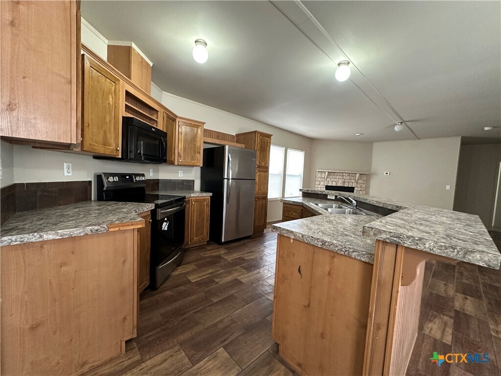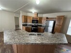 PEACEFUL COUNTRY LIVING! Enjoy quiet country living in this 2 bedroom,2 bath singlewide home situated on approximately .60 acres in Kingsbury,Texas. This property offers space,comfort and privacy. The home features a convenient kitchen with a breakfast bar and eat-in area,the living room includes a charming decorative fireplace for ornamental use,both bathrooms offer tub/shower combinations,laminate floors throughout the home,additionally there is a separate laundry room and two covered decks,ideal for relaxing.