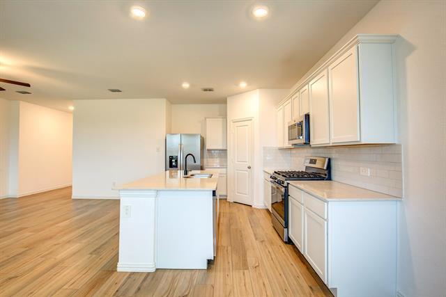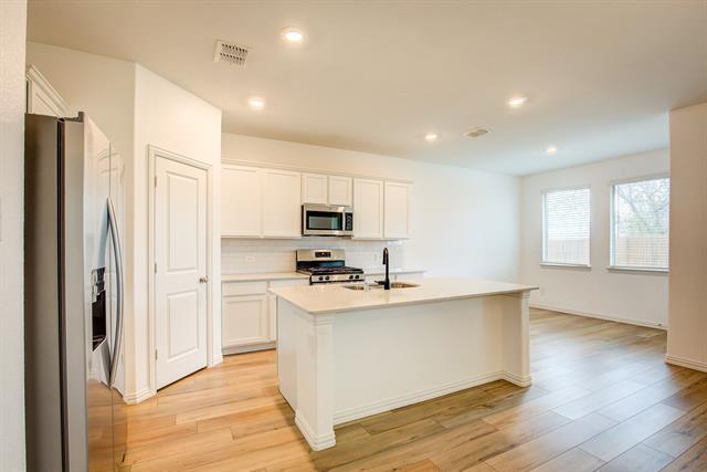 This home in Sendera Ranch has that easygoing, modern vibe that makes settling in feel totally natural. It starts with a landscaped front yard and opens into a bright single-story layout with 4 bedrooms and 2 baths in the highly rated Northwest ISD. The open floor plan keeps everything connected, with a mix of carpet, laminate, and ceramic tile flooring throughout. The kitchen is stacked with the good stuff, built-in cabinets, granite-style countertops, dual sinks, a roomy island, gas range, fridge, and a walk-in pantry, great for everyday cooking or hosting friends. A cozy breakfast room flows right into the inviting living room, giving you that comfortable, lived-in feel from the start. The primary bedroom offers a spacious retreat with dual sinks, separate vanities, a walk-in closet, and a separate shower. You'll also find three additional bedrooms, a second full bath, and a separate utility room with space for a full-size washer and dryer-included! Out back, the wood-fenced yard and covered patio give you an easy space to relax, grill, or unwind. With a 2-car garage with a single wide door, this home brings both convenience and comfort together in a neighborhood people love. All Westrom Group residents are enrolled in our RESIDENT BENEFIT PACKAGE (RBP). Please view our website for more details.