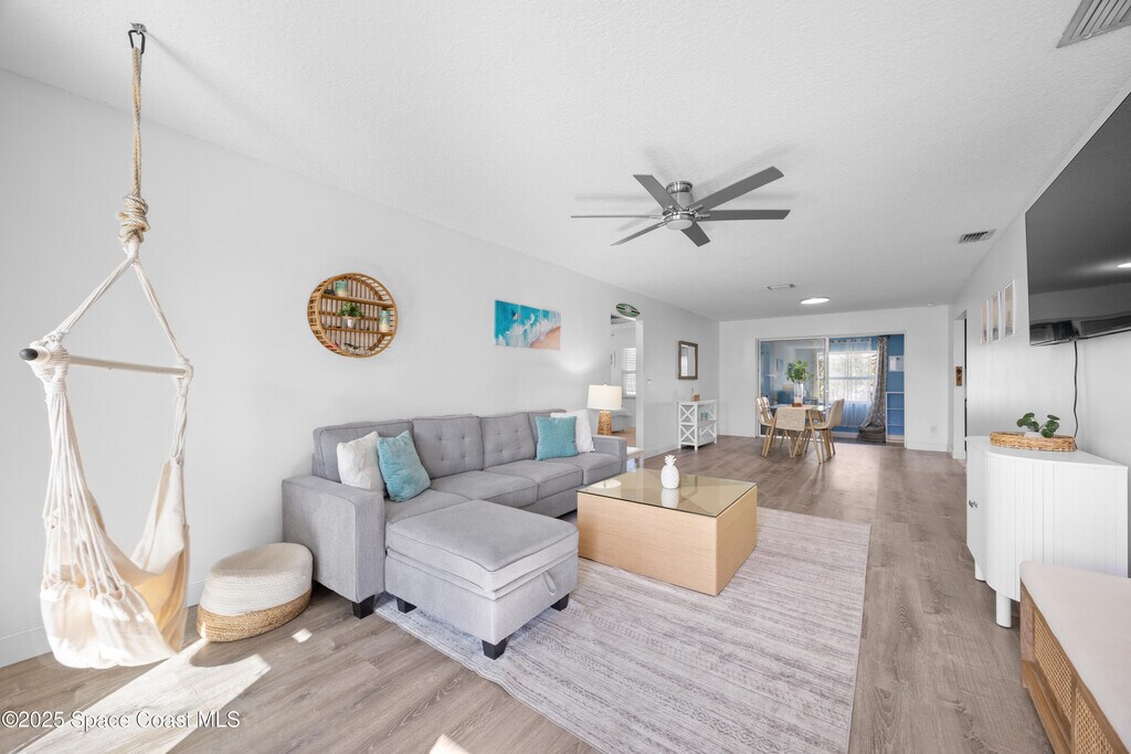 Experience coastal living in this fully furnished and recently renovated 2-bedroom,1-bath half duplex just minutes from miles of beautiful beaches,popular dining,and local shopping. Modern kitchen featuring granite countertops and stainless steel appliances. The updated bathroom offers a double vanity for added convenience. A versatile bonus room is set up as a home office and second living space,with a pull-out couch for guests. Outside,enjoy a spacious patio with a coastal feel,perfect for relaxing or entertaining. One-car garage plus driveway parking for two more vehicles. Conveniently located near Patrick Space Force Base,Publix,& Long Doggers. Rent includes water/sewer,trash,and lawn care. Pets allowed with conditions.