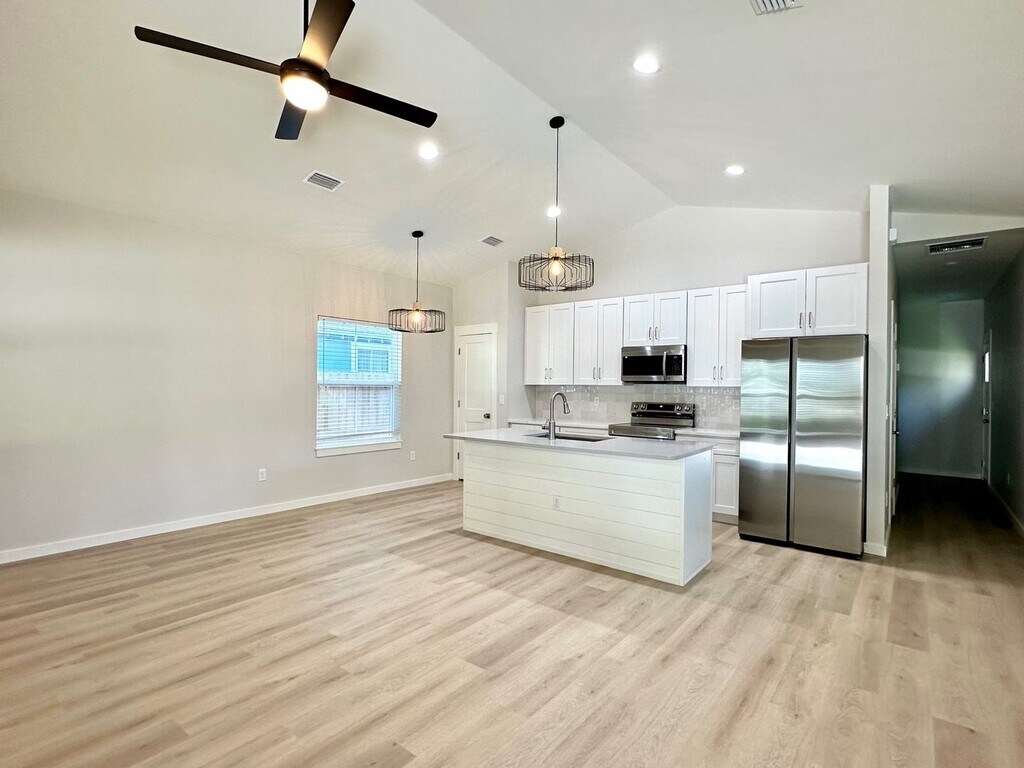 Welcome to this gorgeous new home in Fernandina Beach, FL! This modern 2-bedroom, 2-bathroom house boasts vaulted ceilings, hardwood flooring, and elegant tile throughout. The open floor plan is perfect for entertaining, with modern lighting and top-of-the-line appliances in the kitchen. This home offers the perfect blend of luxury and comfort. Located close to the historic district and the beach, this prime location offers easy access to shopping, schools, parks and restaurants. Don't miss out on the opportunity to make this beautiful home your own! Small to Med dogs ok with owner approval. Call Chaplin Williams Rentals to schedule a showing .