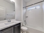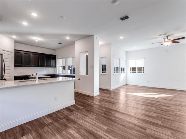 Cute as a button and move-in ready, this charming 3-bedroom, 2-bath home with a 2-car garage is nestled in the quiet community of Aubrey Creek Estates in Aubrey, TX. A private, welcoming courtyard sets the tone as you enter—complete with a pergola and space for seating, perfect for morning coffee or evening unwinding. Inside, the open floorplan is bright and inviting, featuring durable vinyl plank flooring throughout the main living areas and stylish quartz countertops in both the kitchen and bathrooms. The layout offers comfortable, functional living with thoughtful finishes throughout, including stainless steel appliances and beautiful tile work in kitchen and bathrooms. Enjoy a low-maintenance backyard, ideal for easy outdoor enjoyment. The neighborhood is small and peaceful, with access to a community pool for relaxing Texas summers. The property is served by Aubrey ISD, comes with fridge, washer and dryer and is dog friendly. Available now.