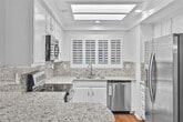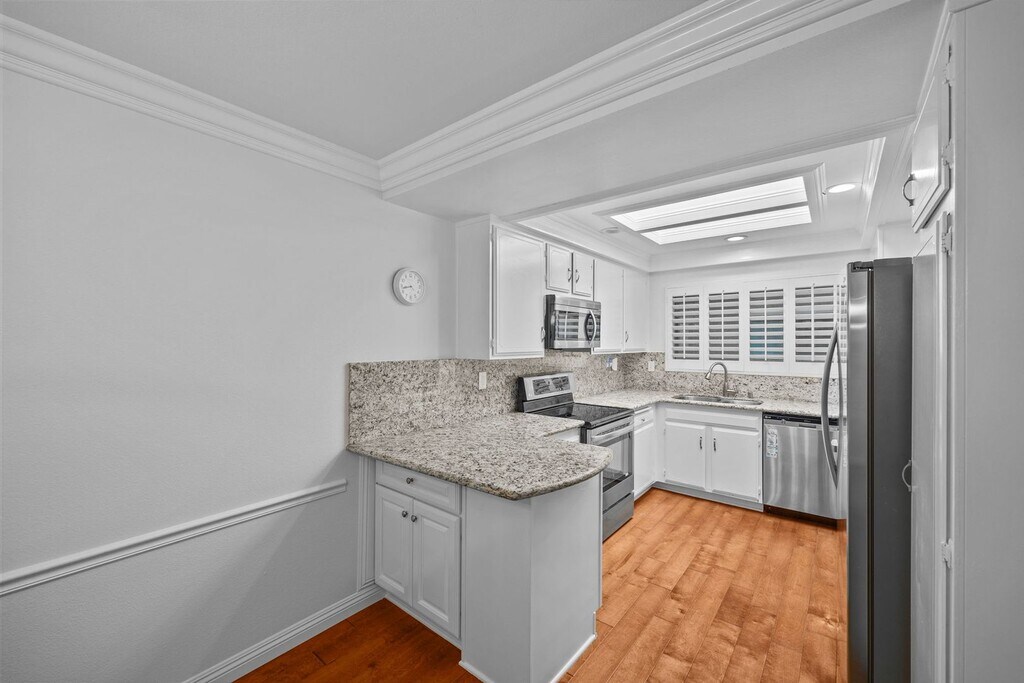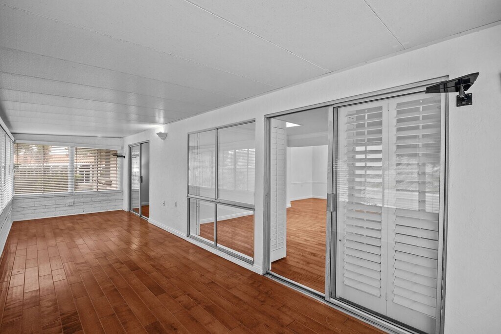 Updated 2bdrm/2ba condo featuring vinyl flooring throughout. Fresh new paint and updated AC/Heating wall units. Beautiful kitchen with granite counters & stainless appliances. Both bedrooms have mirrored wardrobe doors. Experience a bright atmosphere with large skylights in the living room and kitchen. Unwind in the enclosed glassed-in patio, ideal for enjoying the outdoors all year round. Conveniently situated near Club House 6 and in close proximity to Club House 5, offering amenities like an Olympic-size swimming pool and ballroom dancing. Accessibility is seamless with no steps and a nearby carport featuring more storage. Embrace a resort-style lifestyle in this 55+ community, providing an array of over 200 clubs, tennis courts, an equestrian center, library, auditorium, art center, and more. Stay active with two fitness centers, five pools, and eight clubhouses, including a bridge club.