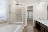 Stunning 2 story home with beautiful stone and brick elevation! Vacant! 2 1/2 car garage,sprinkler system,covered patio,Energy Star Home with Tankless/On-Demand H2O Heater! Grand two-story entry,sweeping iron stairway,wood like carefree vinyl plank flooring,tall custom doors on first floor & more! Massive family room with high ceilings,wall of windows,vinyl wood large plank floors all flow into the casual dining & gourmet kitchen. What a kitchen,features gorgeous quartz countertops,tall custom cabinets with undermount lighting,subway backsplash,deep undermount sink,stainless-steel built-in appliances,walk-in pantry & more! Primary suite with high coffered ceilings,spa bathroom with quartz countertops,his & her undermount sinks,soaker tub,huge shower & more! Upstairs 2 guest bedrooms,full bathroom,wonderful guest suite W/private bathroom,game & media room! Wonderful Amenities! Outstanding schools! Vacant! No Flooding during any of the storms! Minutes from shopping! MLS# 19013750