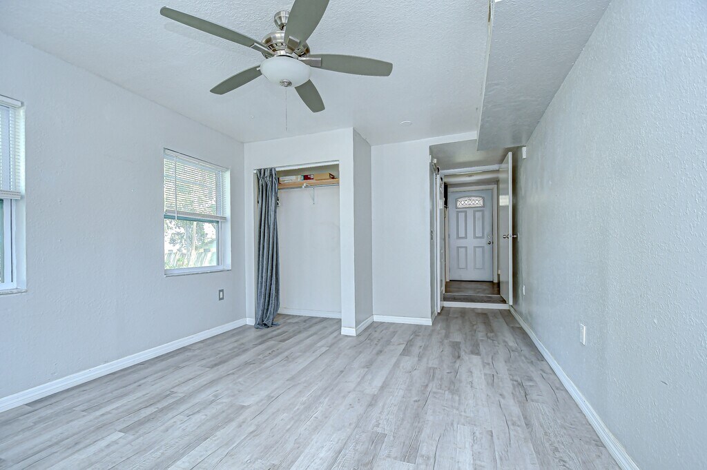 Available for annual lease, this 3-bedroom, 2-bath home in charming Gulfport sits on a spacious, fully fenced corner lot with double-gate entry and a massive shed/garage—perfect for storing all your tools and toys. Step into a bright living room that flows seamlessly into the kitchen and dining area, all finished with sleek laminate floors. The kitchen offers plenty of storage, featuring double pantry closets flanking the refrigerator. Both bathrooms have been tastefully renovated, and modern comforts like energy-saving Tesla solar panels and a REEM tankless hot water heater help keep your utility bills low. The master bedroom suite features an en-suite bathroom with a jetted tub and its own separate entrance for added convenience and privacy, while the two guest bedrooms remain generously sized and light-filled. Just a block from the Pinellas Trail and perfectly positioned between St. Pete's award-winning Gulf beaches and Downtown Gulfport's vibrant arts scene, you'll have top restaurants, unique shops, and sandy shores at your fingertips. You're only 10 minutes from the beach, 10 minutes from trendy downtown St. Petersburg, and a quick 30-minute drive to Tampa International Airport. Don't miss this exceptional Gulfport retreat—schedule your private showing today!