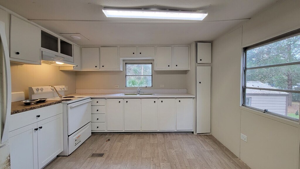 2 bedroom, 1 bath home with a covered deck on a private fenced 1/4 Acre of land located in Southeast Ocala has FRESH paint, NEW flooring, Central Heating & Air Conditioning system & a NEW roof, The equipped kitchen has a fridge and stove. There's plenty of extra storage space in the 2 storage buildings. Washer & dryer hookup is in the front storage building. Home is on well water... No Water Bill! Rent $1,250 per month Security Deposit $1,250 HIGHLY SOUGHT AFTER SCHOOL DISTRICT! Shady Hill Elementary Belleview Middle Forest High WE ARE PET FRIENDLY! NO CREDIT NEEDED requirements are: 1st, mo., last mo. & Sec. deposit to move in on a 1 year lease. Pet sec. deposit is $300 & add $50 per mo. per approved pet. Go take a look at 5325 SE 32nd Ct Ocala, Fl 34480. Call our office at . Or come visit our friendly office staff at 3960 S. Pine Ave., Ocala, FL 34480. M-F 9:00 - 4:00.