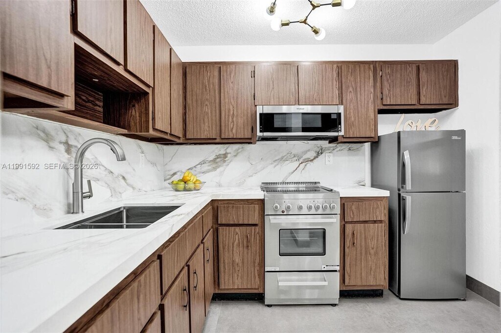 Comfortable one bedroom, one bath condo apartment in desirable Lakeview Gardens features brand new porcelain floors throughout, new stainless steel kitchen appliances and countertops, and a gorgeous new bathroom with large vanity and shower. The spacious bedroom has a large closet with an airy balcony. Impact rated window, balcony sliders and entrance doors. New HVAC too. This move-in ready 2nd floor walk-up apartment has one assigned parking space situated right by the entrance, and community amenities that include pool and tennis are conveniently close by. Lakeview is a highly desirable, centrally located community with easy access to major crossroads and highways, close to shopping, dining, houses of worship and more. Great opportunity to live in the middle of town! No pets per condo regulations. MLS # A11991592