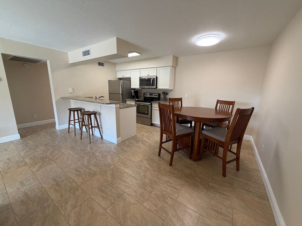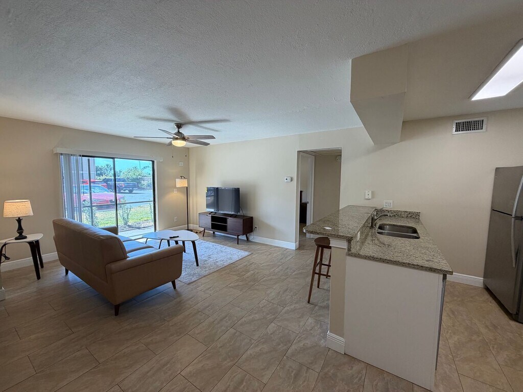 Welcome to the ANNUAL RENTAL - FURNISHED 1 BED / 1 BATH CONDO AT MYSTIC GARDEN, a gem nestled in the heart of Fort Myers, FL. This first-floor condo is fully furnished and boasts a modern design with stainless steel appliances, white cabinets, and granite counters. The unit features tile flooring throughout, adding a touch of elegance and ease of maintenance. The condo includes a renovated bathroom, enhancing your living experience with its contemporary style. The screened and covered lanai offers a perfect spot for relaxation, complete with a storage closet for your convenience. As a resident, you'll have access to a community pool and tennis court, providing ample opportunities for recreation and leisure. The unit also includes an in-unit laundry, adding to the convenience of your daily routine. $50.00 monthly charge for water and sewer in addition to rent. Experience the perfect blend of comfort and style at Mystic Garden.