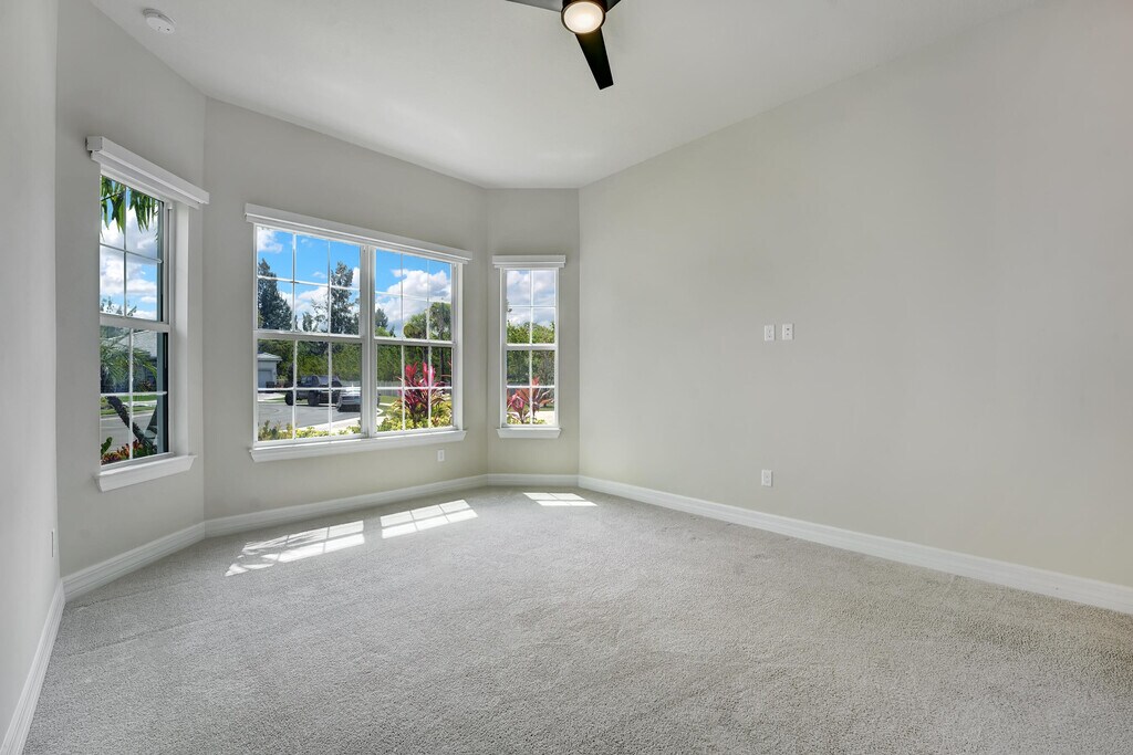 Experience luxury living in Windsong Estates, gated community in Lake Worth, designed with a focus on contemporary comfort and convenience. Just minutes from the Florida Turnpike and close to the vibrant attractions of Wellington, this community offers a perfect blend of tranquility and accessibility. This 'Stellar' model, built in 2022, is a standout one-story home featuring 3 bedrooms+2 flex rooms, 3 bathrooms, a 3-car garage, dramatic high ceilings, and an added sunroom that enhances the spacious feel. The home also includes a covered and screened lanai that looks out onto a beautiful, private water lot situated on a quiet cul-de-sac.