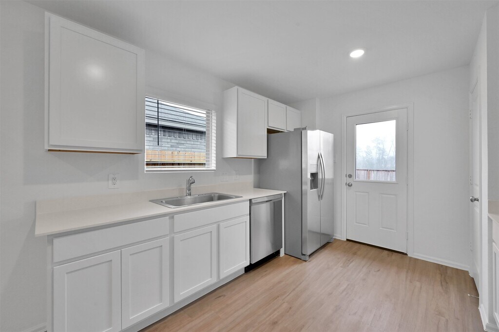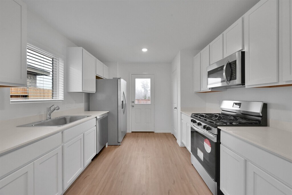 Great home with an open concept,laminate floors and quartz countertops. 3 bedrooms and 2 bath with beautiful glass doors. Refrigerator,washer and dryer included. Fans in all rooms. 2 car garage attached to the house with garage door opener. Close to I-45 near grocery store and restaurants. Call for a showing! MLS# 91136083