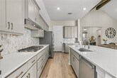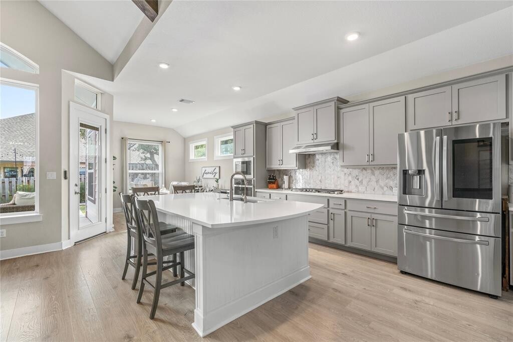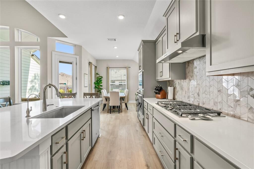 Discover the perfect blend of luxury and Hill Country charm at 533 Mallow Road in the highly sought after Bryson community. Built in 2023, this stunning 4 bedroom, 3.5 bathroom home showcases a white and black farmhouse elevation with exceptional attention to detail inside and out. Step inside to an open concept layout featuring luxury vinyl plank flooring, vaulted ceilings with wood beams, and an inviting electric fireplace. The gourmet kitchen offers an oversized island, quartz countertops, designer lighting, and ample cabinetry, seamlessly connecting to the living and dining areas. The primary suite provides a spa like retreat with a walk in shower, soaking tub, dual vanities, and an oversized closet. Upstairs, a spacious bonus game room offers the perfect space for entertainment or relaxation. Additional highlights include a tankless water heater, water softener, irrigation system, and a 2.5 car garage with built in storage racking. Outside, enjoy a professionally landscaped yard, extended covered patio, and north facing orientation for year round comfort. Located in the resort style Bryson community featuring pools, splash pad, dog park, playgrounds, fishing ponds, scenic trails, and an on site elementary school, this home offers peaceful living just minutes from shopping, dining, and the CapMetro Rail Station.