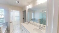 Stunning home in a highly desirable Bentley Estates offers 3 bedrooms with 2.5 baths,with a generous loft upstairs. Multiple upgrades set this property apart - a master bathroom was upgraded with tiled walls,frameless glass doors,a separate bathtub,and a double vanity with upscale quartz countertops. The secondary bathroom was upgraded with tiled walls. A kitchen offers upscale quartz countertops,an upgraded set of appliances such as a high-end super-quiet bosch dishwasher,an efficient modern range,and a fridge. The entire main floor has hardwood flooring,including upgraded hardwood stairs,which will keep your stairs always appealing. 2-car garage,a fully fenced backyard,walking distance to Lidl,LA Fitness,and minutes from major shopping and I-285. The HOA maintains the lawn.
