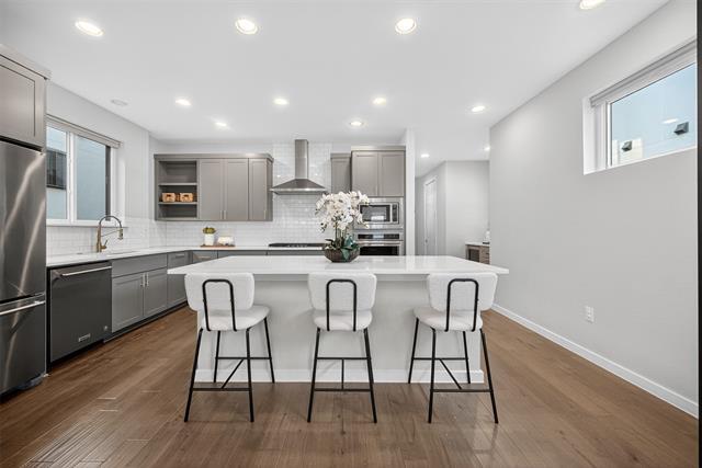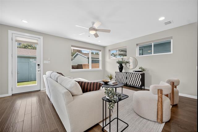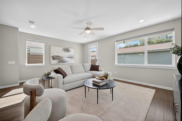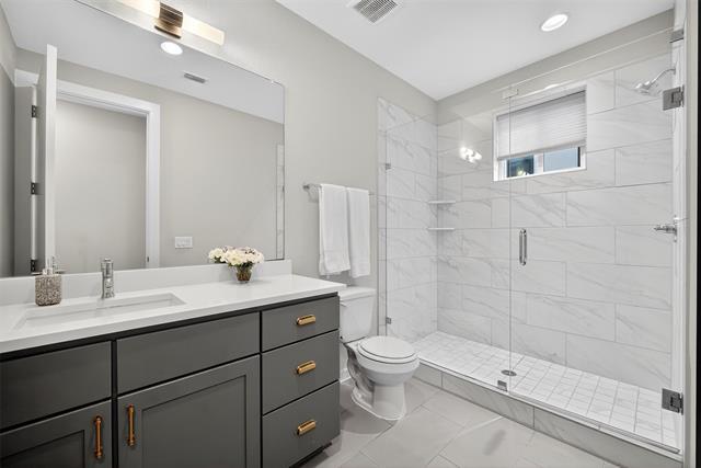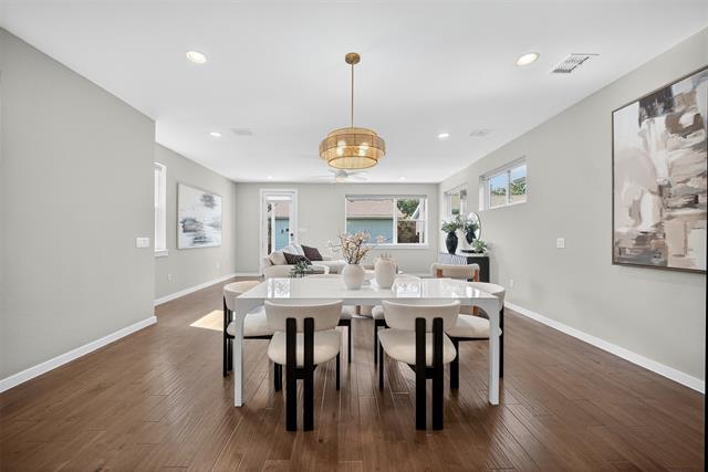 Modern style meets everyday convenience in this four-bedroom Dallas home, offering a flexible layout for work, guests, or play. Sunlit interiors feature tall ceilings, abundant natural light, and dual-pane low-E windows. The living and dining areas flow effortlessly into a chef’s kitchen outfitted with quartz countertops, ample storage, a generous island, and stainless steel appliances, a built-in bar, and wine fridge—perfect for entertaining or casual family nights. A cozy sitting area and a versatile downstairs bedroom, ideal as a guest suite or home office, complete the main level. Upstairs, warm wood floors lead you to a serene primary suite with a ensuite bath, dual sinks, and a walk-in closet. Two additional bedrooms, a flex room, a shared bath, and a full-size laundry room complete the second floor, offering both comfort and style for modern living. The backyard provides a private retreat with low-maintenance artificial turf, perfect for effortless entertaining year-round. Energy-efficient upgrades include Tesla 3kW solar panels, dual-zone HVAC, blackout shades, and a tankless water heater. Just steps from Glencoe Park, Greenville Avenue, and Mockingbird Station, with quick access to Downtown, SMU, and White Rock Lake, this home is also zoned to highly rated Mockingbird Elementary. A rare opportunity in one of Dallas’ most vibrant neighborhoods!