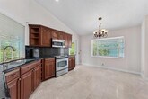 Single Family home with 3 Bedrooms, 2 Bathrooms, 2 Car Garage, Laundry Room, Impact Windows/Doors. This lovely home is in one of the area’s most sought-after communities. From its charming curb appeal and welcoming front porch to its light-filled interior, it’s sure to win you over. Inside, soaring vaulted ceilings, a large picture window, and neutral tile floors create a bright, airy feel throughout the spacious living areas. The open kitchen features SS appliances & a sunny breakfast nook. The spacious primary suite offers light-toned laminate floors, generous closets, and an ensuite bath. The spacious screened porch is an ideal place to unwind. Residents enjoy a community pool and a convenient location. Just a short stroll to an A-rated elementary school
