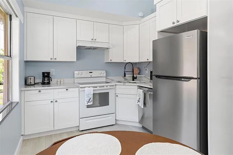 Tucked away on a dead-end street, this cozy and inviting house just 20 minutes to the beach has everything you need. The kitchen is compact but functional, with modern appliances and new countertops. The two bedrooms both have good size, one with a queen bed and the other two twin beds. The bathroom is modern and pretty with all updated fixtures. The shared washer and dryer are right outside of the house in a small room. You'll share the lot, the washer and dryer with another couple who lives in an RV on the same lot. Besides the large lot with over 10,000 square feet, what is bonus is the vast, open park-like space behind the chicken fence. Stepping out from the back door, you're greeted by this peaceful lawn that looks like an extension of your own backyard. The house is in proximity to Walmart, Sam's Club, Publix, Starbuck and lots of restaurants. Owner provides all utilities including internet, it is truly a one -payment -for- all rental. Come check it out. Please call Hung at before you submit your application.