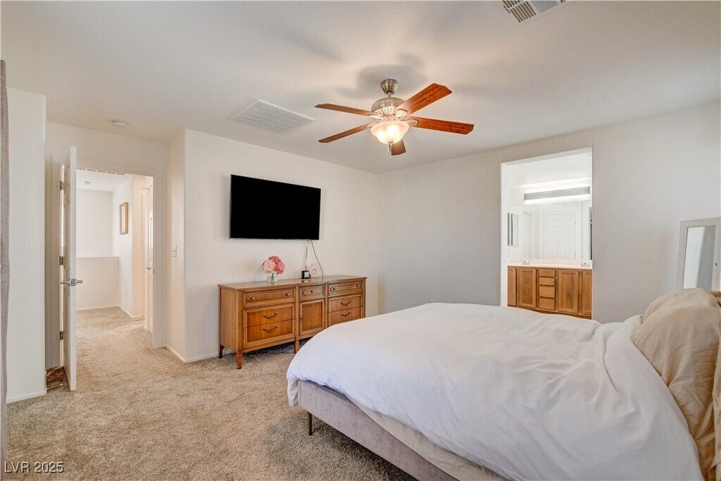 This beautifully maintained 3 bedroom home with a 2 car garage is located in a gated community and offers modern comfort with the added benefit of solar panels for energy efficiency! The open floor plan is designed for both style and convenience, featuring ceiling fans throughout, including all bedrooms! The kitchen is equipped with a breakfast bar, granite countertops, tile flooring and a pantry, providing plenty of space for cooking and entertaining! The primary bedroom includes a walk-in closet and a private bath with dual sinks, a separate shower and a soaking tub! The washer and dryer are conveniently located upstairs for added ease and the home also includes a water softener for everyday comfort! The backyard is perfect for relaxing or gatherings with a covered patio! Community amenities include a pool, barbecue area, park and playground! Conveniently situated just minutes from schools, shopping, the freeway and entertainment, this home offers both comfort and accessibility!