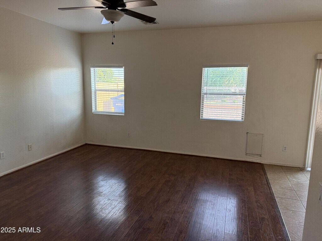 Nice and clean 4 bedrooms,3 full baths plus a loft area upstairs. Back to green belt with view fence. One of the bedrooms and one of the full baths are in downstairs. 3 bedrooms upstairs have walk in closet. 2 car garage with your own driveway. Washer / dryer and refrigerator are included. NEW carpet,laminate wood floor in family room and downstairs bedroom. Best location in Laveen,close to all shopping and new South Mountain Freeway. Come to check it out,it won't last.