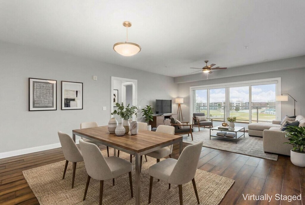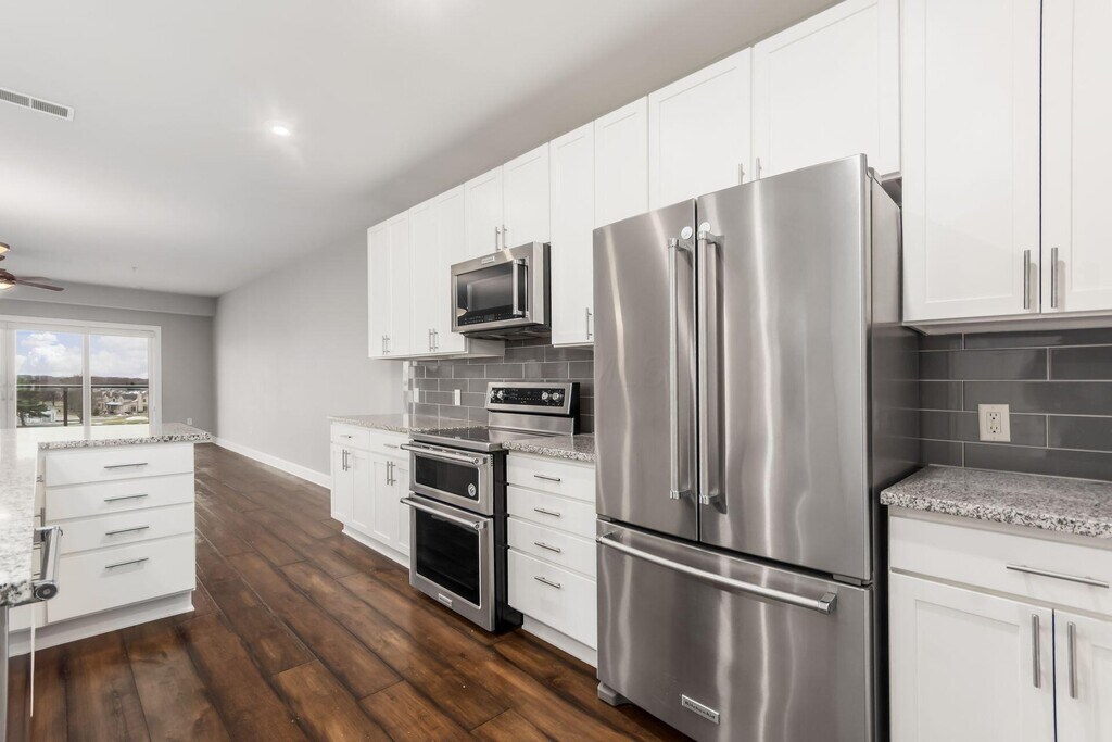 Spectacular 4th Floor unit with views of Little Turtle Golf course and downtown skyline,open spacious floor plan,9ft ceilings,7ft high doors,Stainless steel appliances. 2 large bedrooms with 2 baths. Underground secured parking garage and elevator to take you to your 4th floor unit. Close to Airport,Easton and Downtown. Comes with washer / dryer and social membership to Little Turtle Golf Club...tenant responsible for monthly food / beverage minimum.