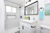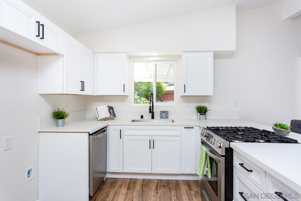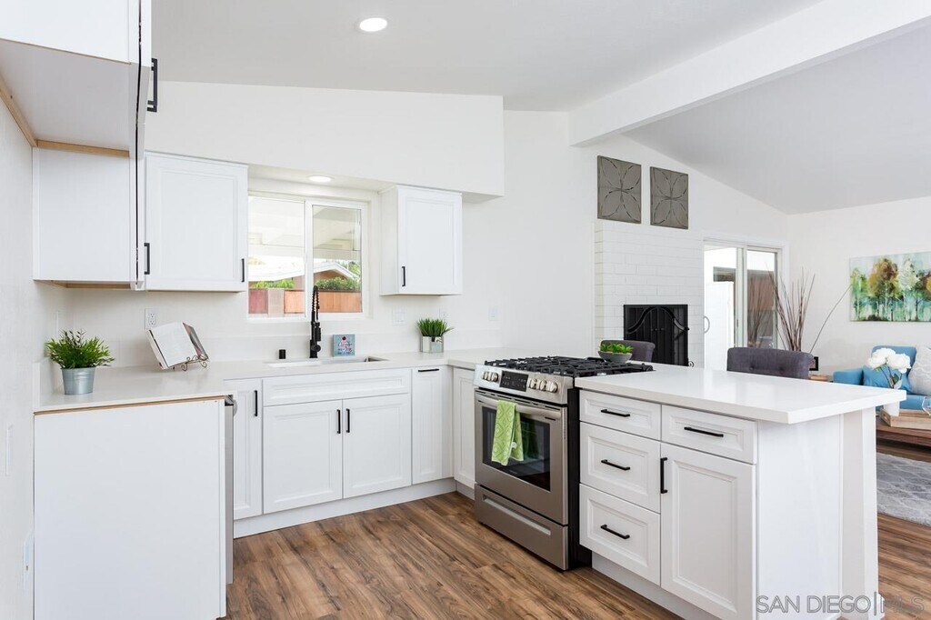Welcome home to this inviting residence featuring an open and bright floor plan. The main living area boasts new wood-like flooring, while the bedrooms offer comfort with plush new carpeting. The kitchen is a chef's delight, showcasing new cabinets, quartz countertops, and top-of-the-line stainless steel appliances. The spacious living room is adorned with a large fireplace, creating a cozy ambiance. Enjoy seamless indoor-outdoor living through the sliding glass door leading to the patio. The expansive yard is a haven, adorned with fresh sod, fruit trees, and the convenience of a detached garage. This charming home is situated within walking distance to the park, school, shopping, and more. Don't miss the opportunity to make this delightful property your own!