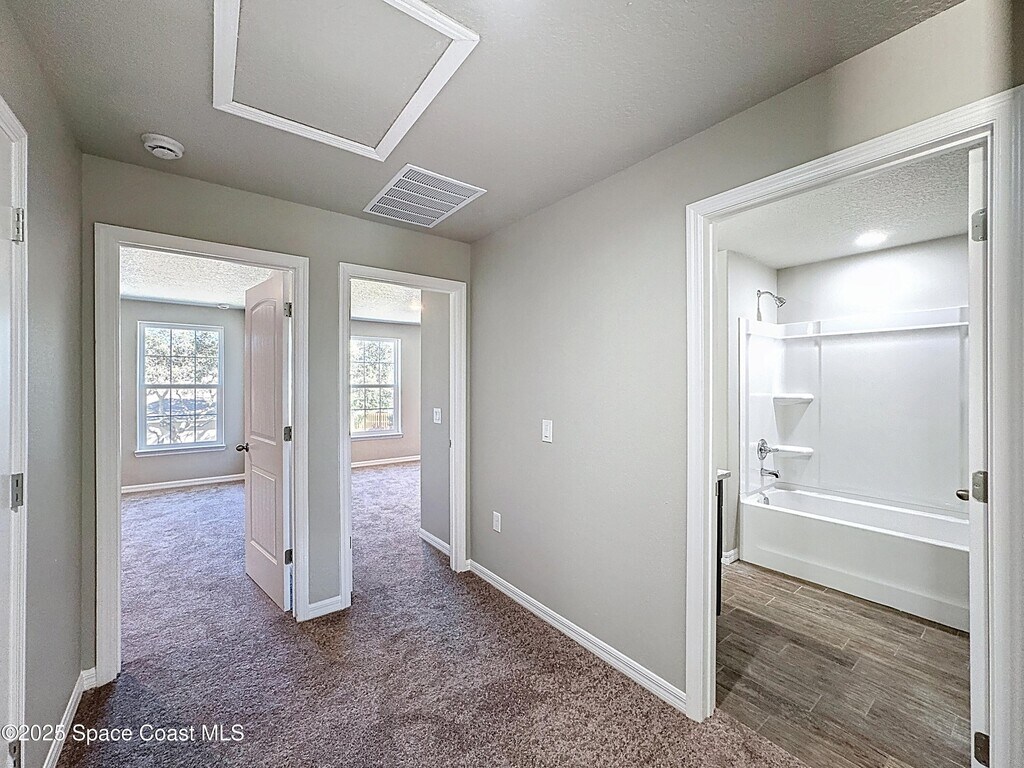 Stunning New Construction Townhouse! Be the first to live in this beautiful two-story townhouse which features 4 bedrooms,2.5 bathrooms,and an oversized 2-car garage in a sought-after neighborhood with a community pool. All bedrooms are conveniently located upstairs,as is the indoor laundry room. The split plan nestles the smallest of the guest rooms next to the Primary suite,making it perfect for a home office,nursery or gym. The 1st floor main living areas boast wood plank tile flooring. The eat-in kitchen includes a breakfast bar and is open to the great room. Enjoy outdoor living on the covered back porch,plus the convenience of a spacious two-car garage. This home offers privacy while enjoying resort-style amenities like a Community pool and tennis court. Ideally located near beaches,shopping,dining,and the Space Center... and is a short commute to Orlando Airport. Don't miss outschedule your private showing today.