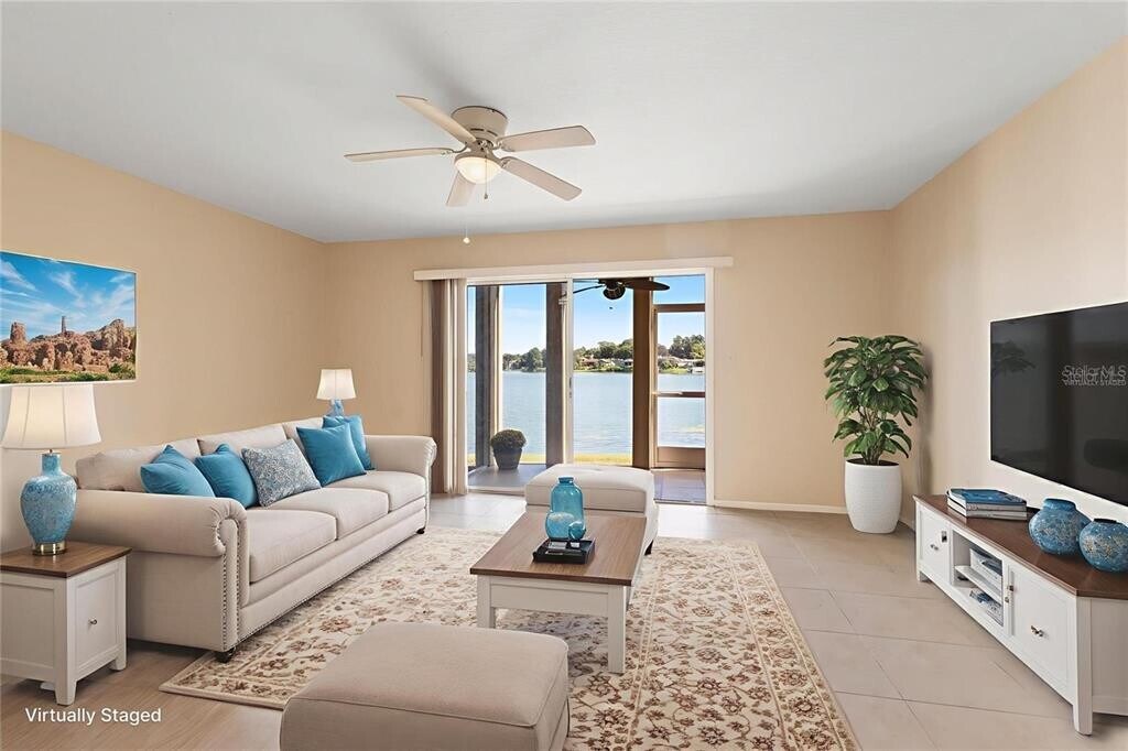Ground floor.. WATERFRONT!! Enjoy true lakefront living with stunning,unobstructed water views from every room This unit 2-bedroom,2-bath condo offers nearly 1,400 sq. ft. of living space and features the largest two-bedroom floor plan in Royal Arms. Wake up to peaceful lake views right from your bed. Interior highlights include matching tile floors throughout the whole condo,no carpet. Two private screened patios,one with ceiling fan,new door,and new screens. Sliding glass doors open directly from the living room to your outdoor retreat—perfect for morning coffee or evening sunsets. Kitchen has eat-at counter and lots of cabinet space. Separate laundry closet for full size washer/dryer,separate additional linen closet,plenty of storage. Lake side unit with Additional amenities include 3 swimming pools and tennis courts. Conveniently located near AdventHealth hospital,Altamonte Mall,tons of shopping and excellent restaurants,with quick access to I-4. HOA dues include water,sewer,trash,and building maintenance. MLS# R4910255