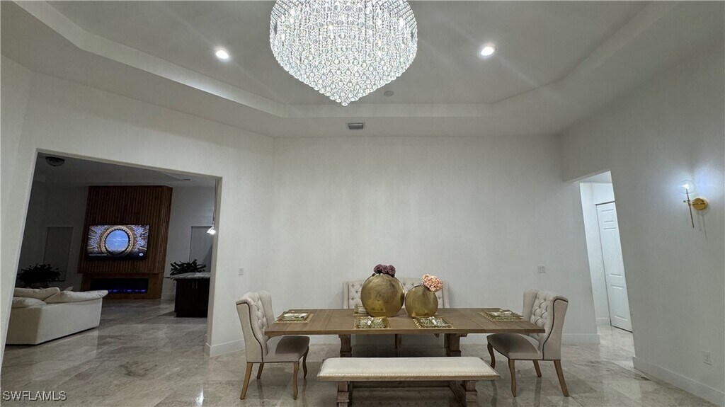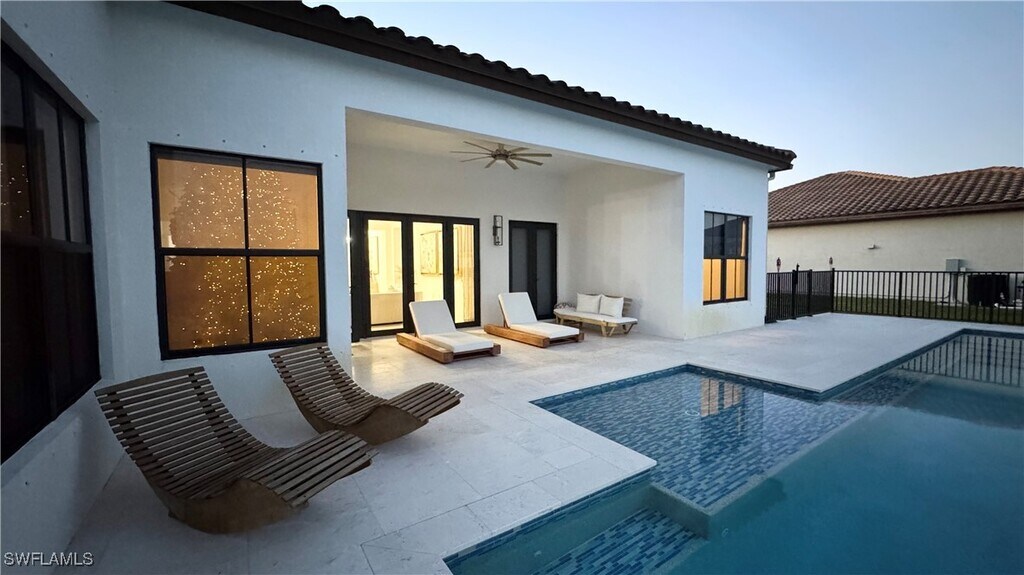 Beautiful Chesboro model home located in the gated community of Maple Ridge – The Reserve at Ave Maria. This well-maintained residence offers 4 bedrooms and 3 bathrooms with an open-concept layout,elegant marble flooring,and a sleek modern fireplace. The outdoor living space features a private fenced pool with spa and cascading waterfall,ideal for relaxing or entertaining. Additional highlights include a 3-car garage and access to resort-style community amenities. Conveniently located near schools,shopping,and dining.